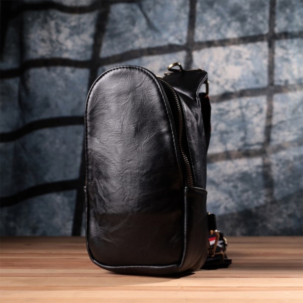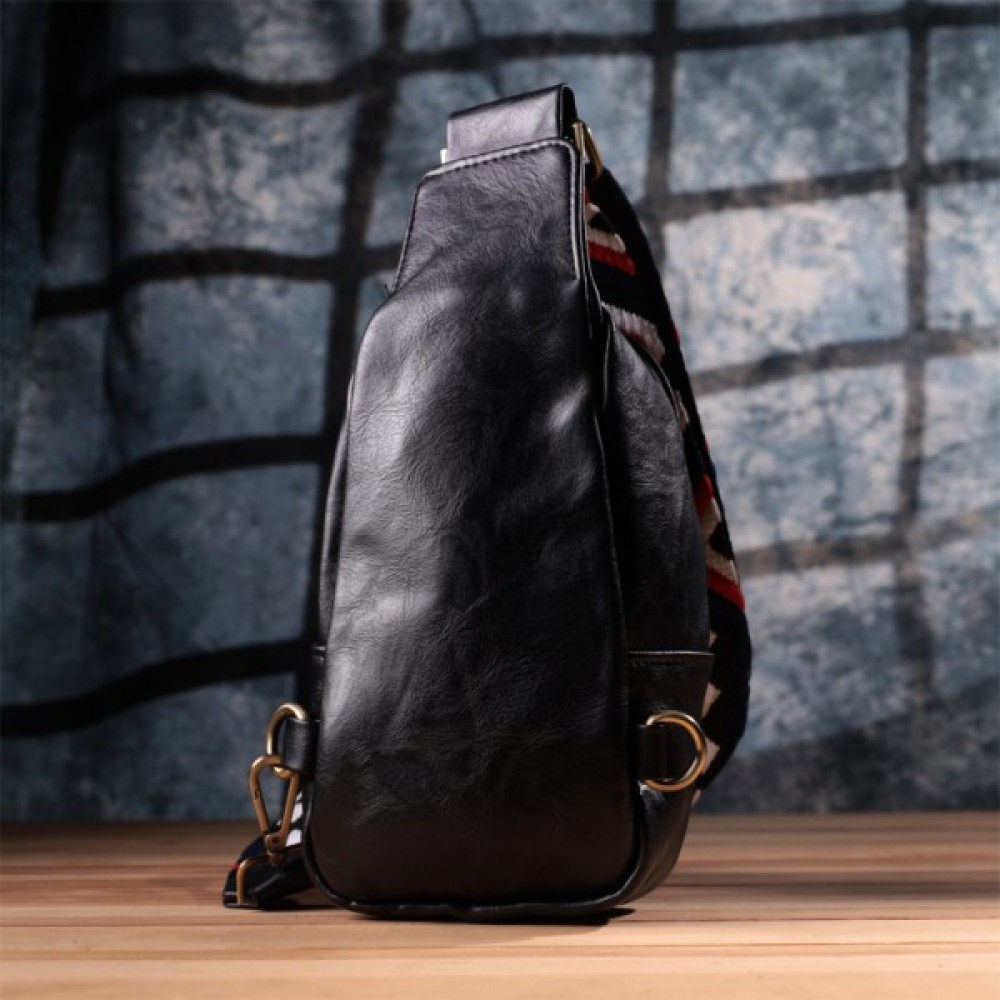 Модель Жіноча слінг через плече з екошкіри Чорна