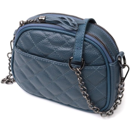 Якісна сумка для жінок невеликого розміру на два автономні відділення з натуральної шкіри флотар, стьобана модними ромбами.