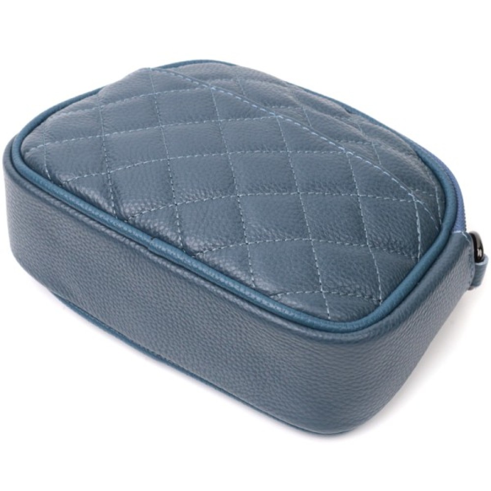 Жіноча стьобана з м'якої натуральної шкіри Синя