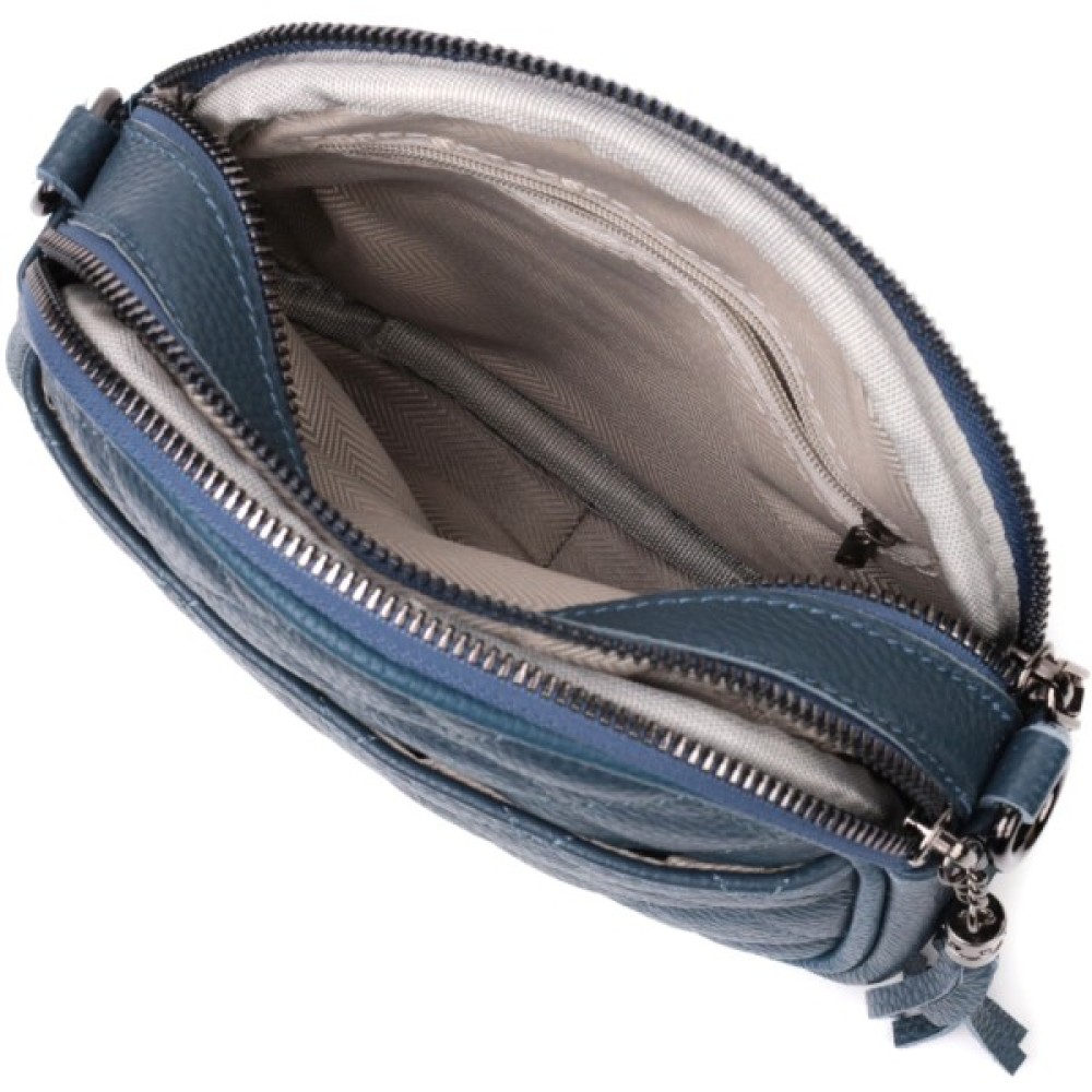 Аксесуар складається з двох автономних відділень, кишені відкритого типу, потайної кишені на блискавці та зовнішньої кишені відкритого типу. Носити сумку можна в руці, на плечі і через плече, для цього є шкіряний ремінь, що знімається. В аксесуарі використано якісну фурнітуру кольору темного срібла. Відмінний варіант сумки для жінок, які люблять якісні та стильні речі.