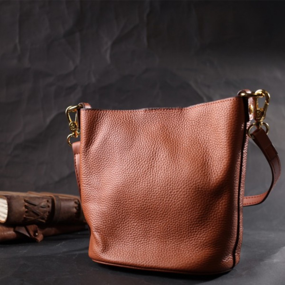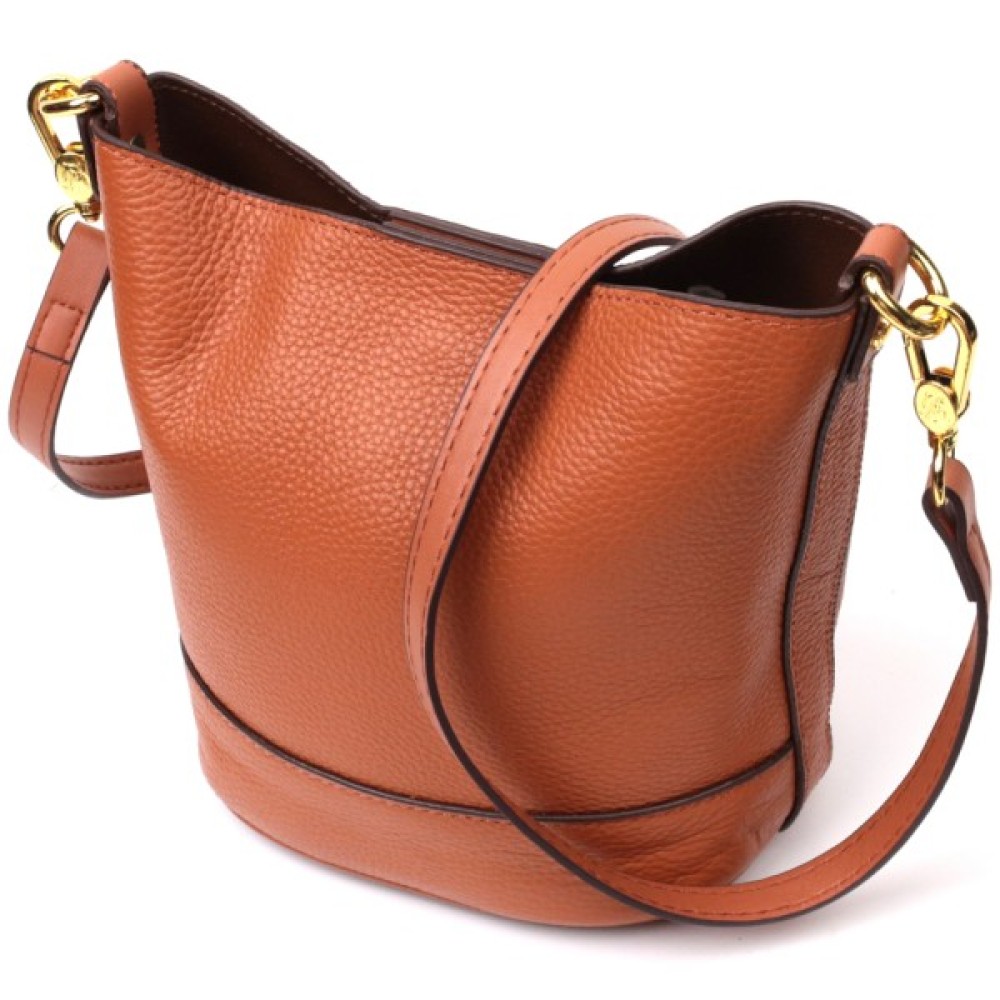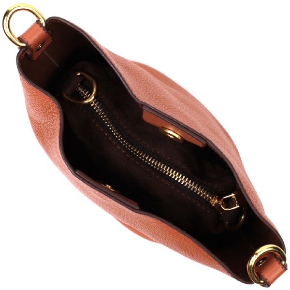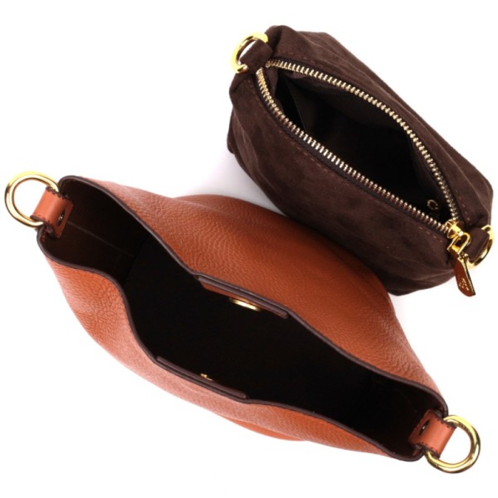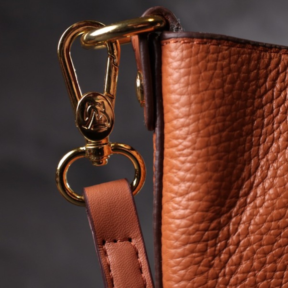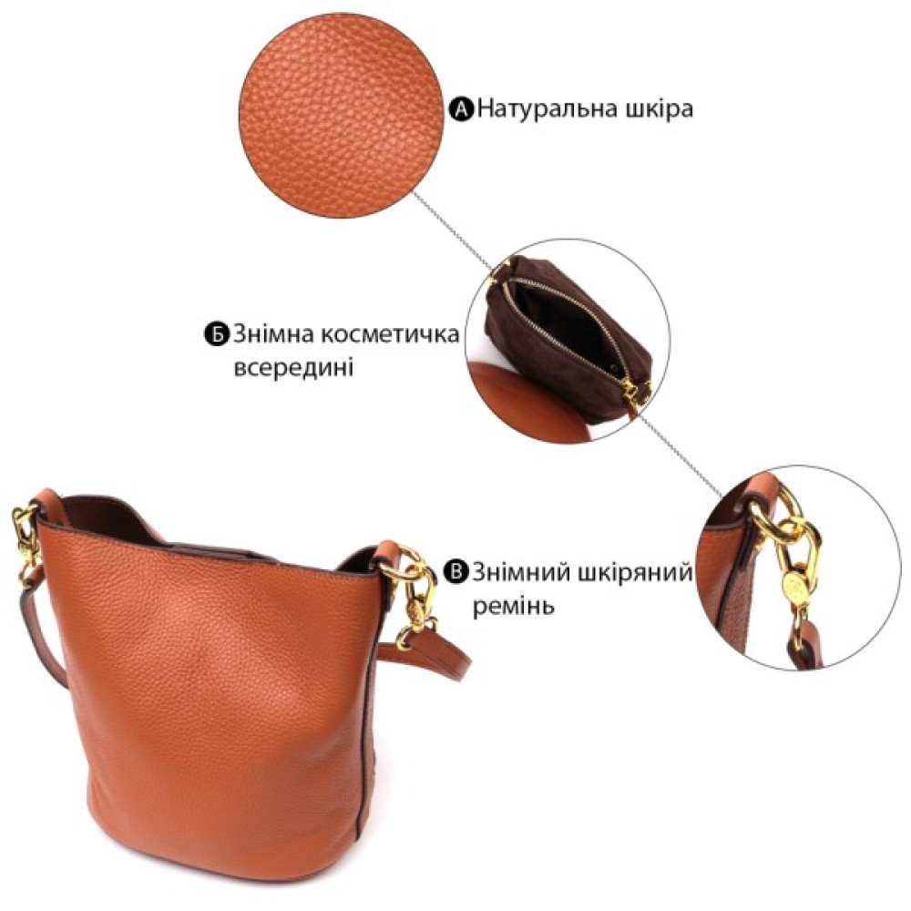 Виріб пошитий з якісної натуральної шкіри, яка довго носиться і не втрачає свого первісного вигляду. Аксесуар складається з одного відділення, в якому пристібається косметичка, що закривається на блискавку. Носити сумку можна на плечі і через плече, для цього є шкіряний ремінь, що знімається. У виробі використано якісну фурнітуру кольору жовтого золота. Універсальний варіант сумки як на вечір так і як сумочка на кожен день.