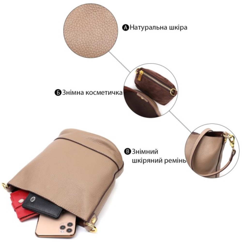 Сумка, Vintage, Жіноча, з, автономною, косметичкою, з, натуральної, шкіри, Бежева, 22364