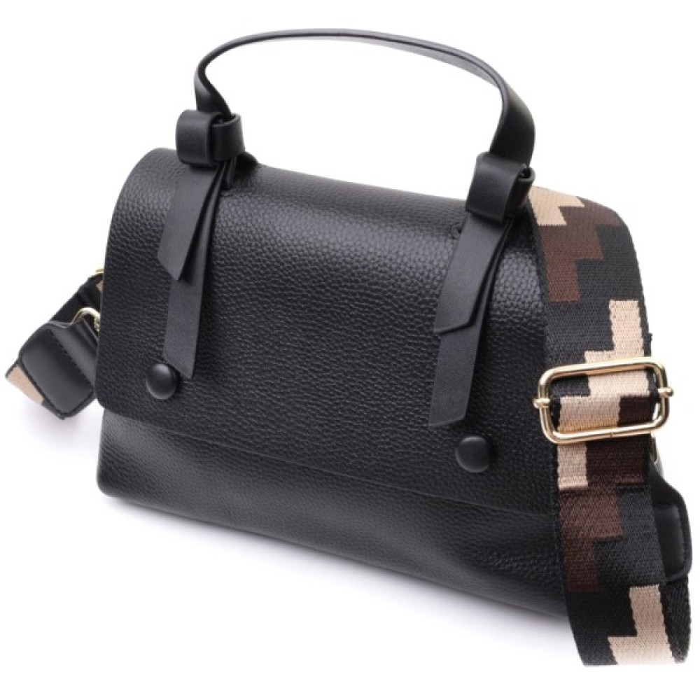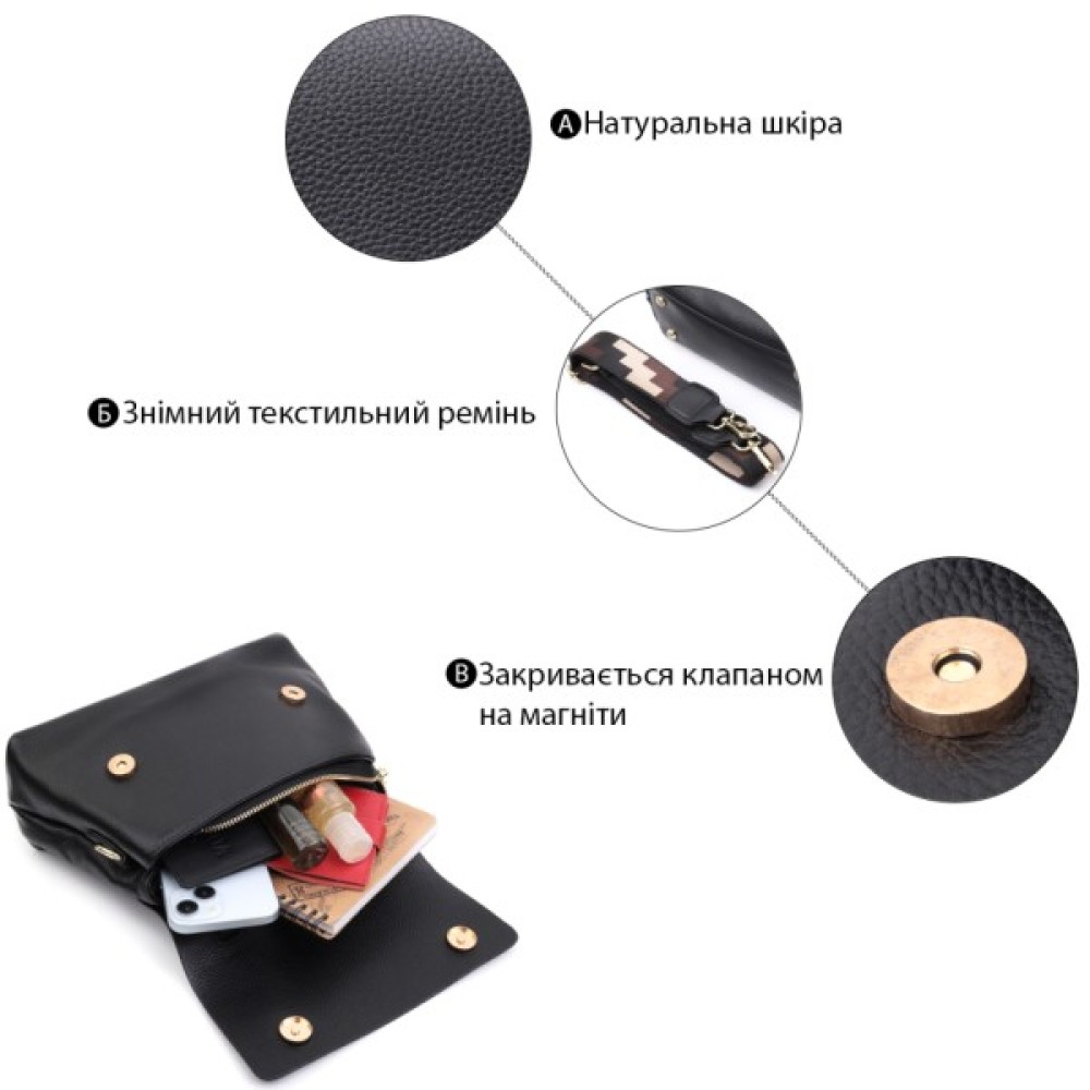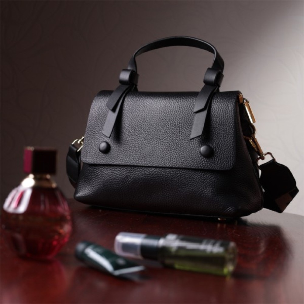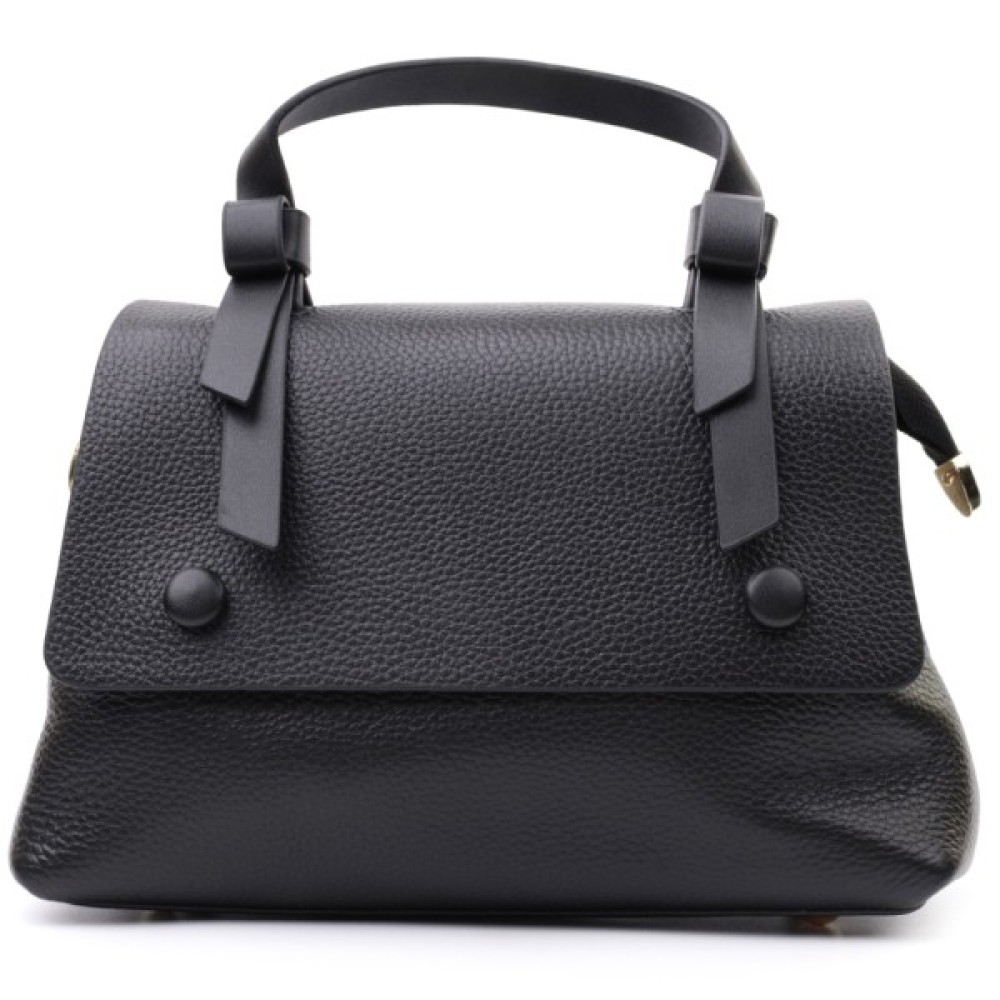 Жіноча з короткою ручкою з натуральної шкіри Чорна