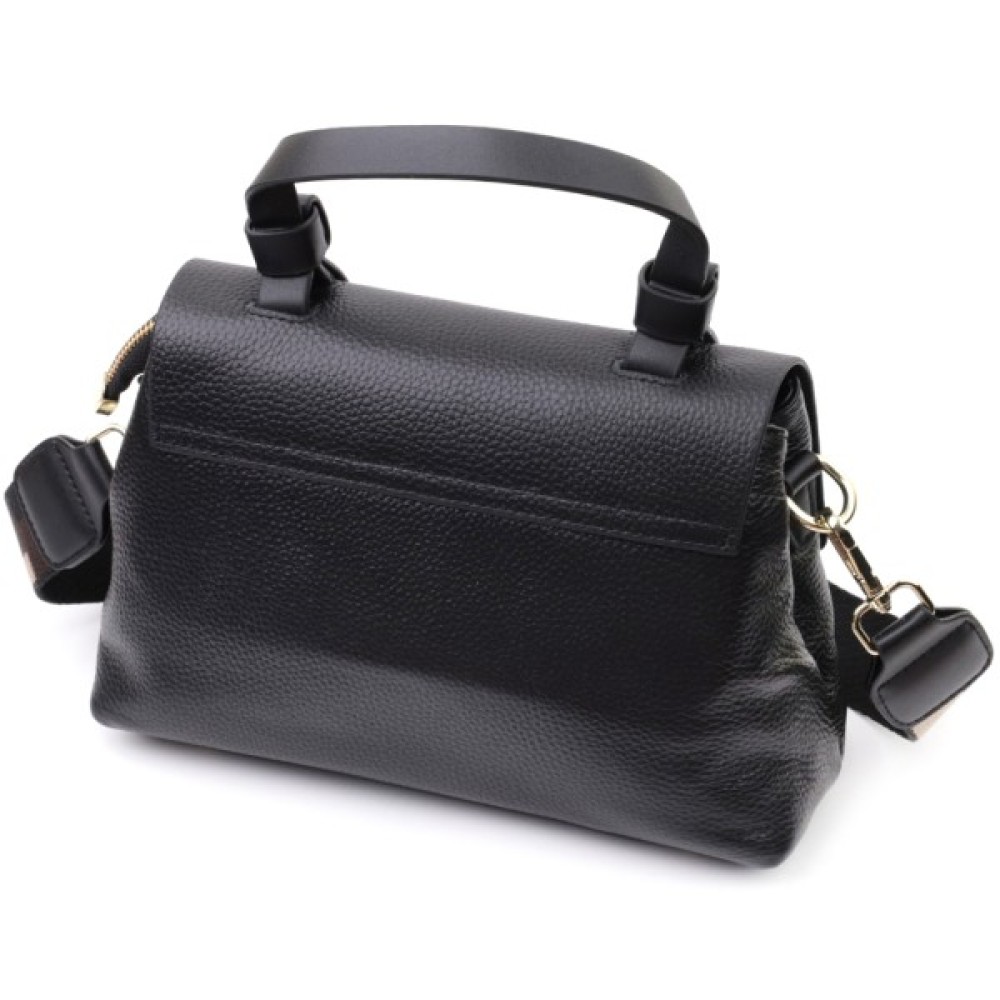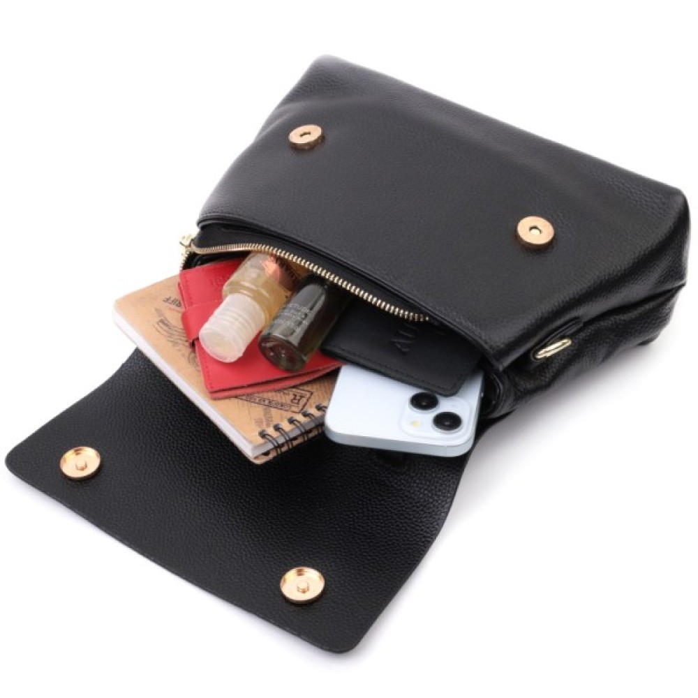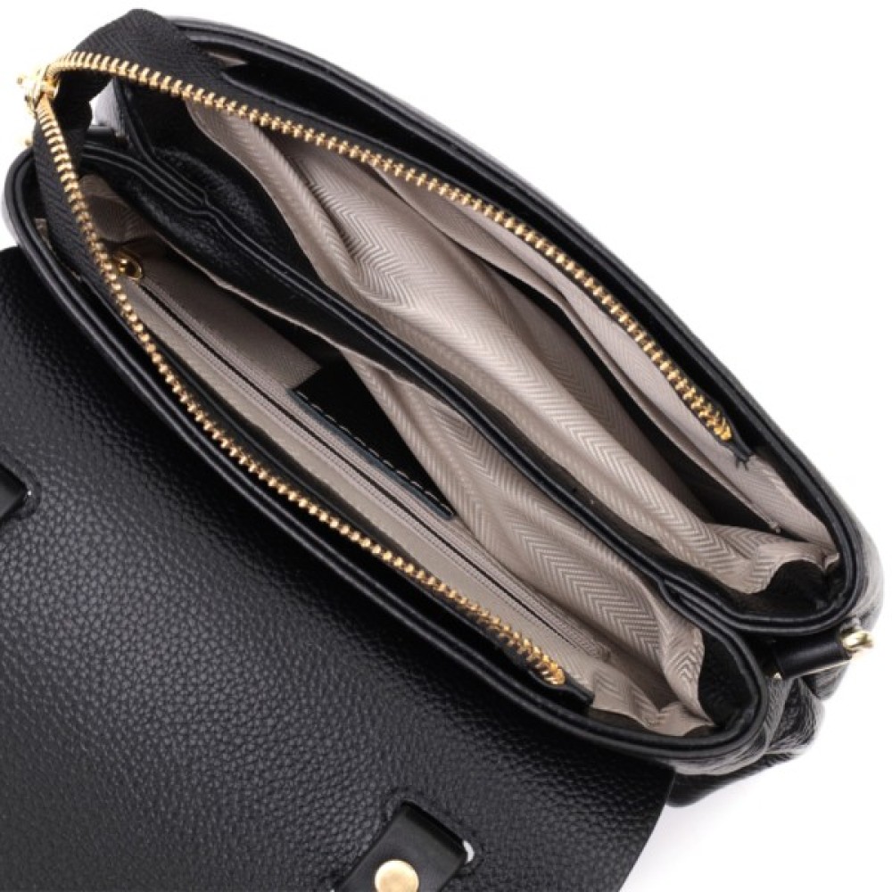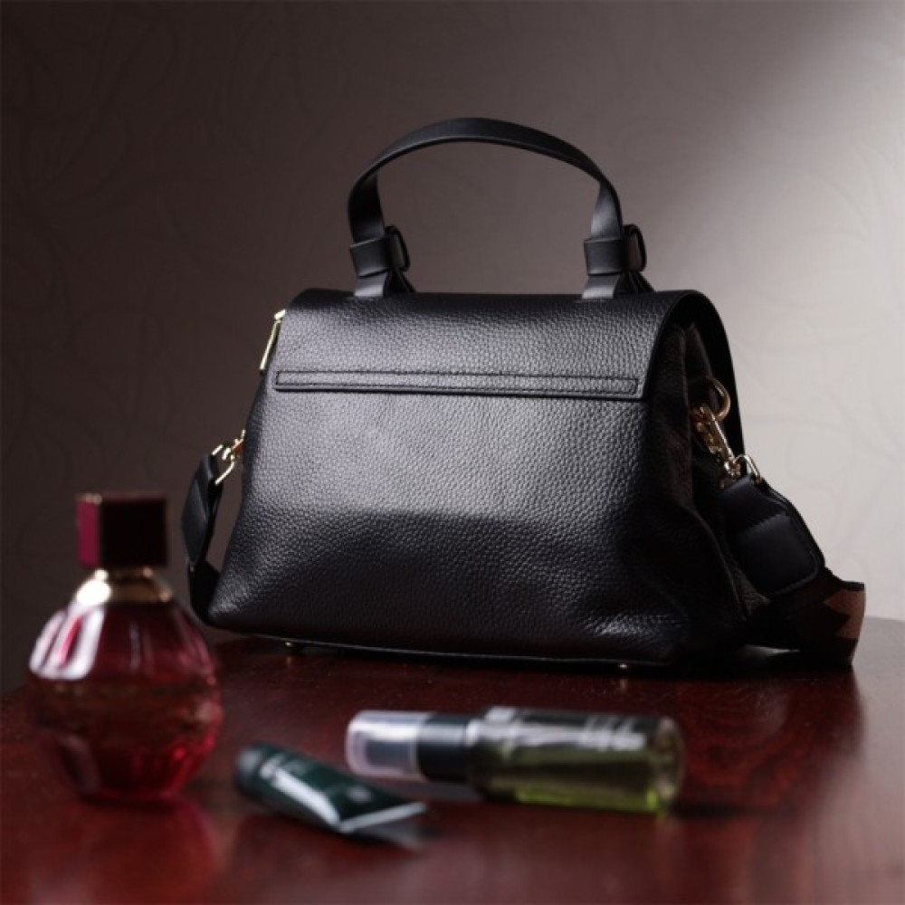 Жіноча з короткою ручкою з натуральної шкіри Чорна