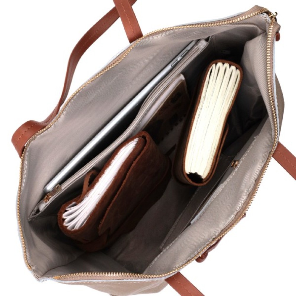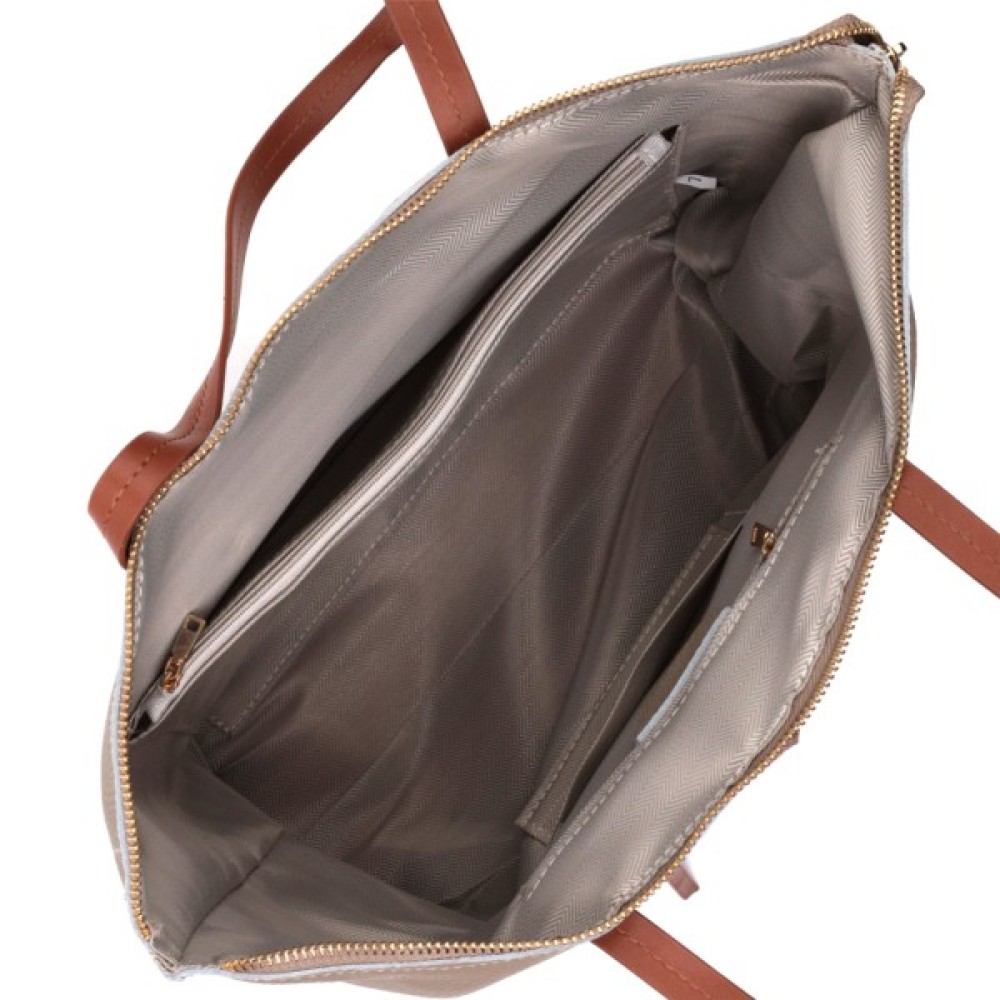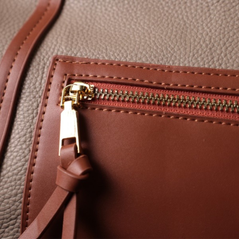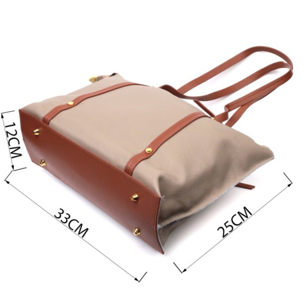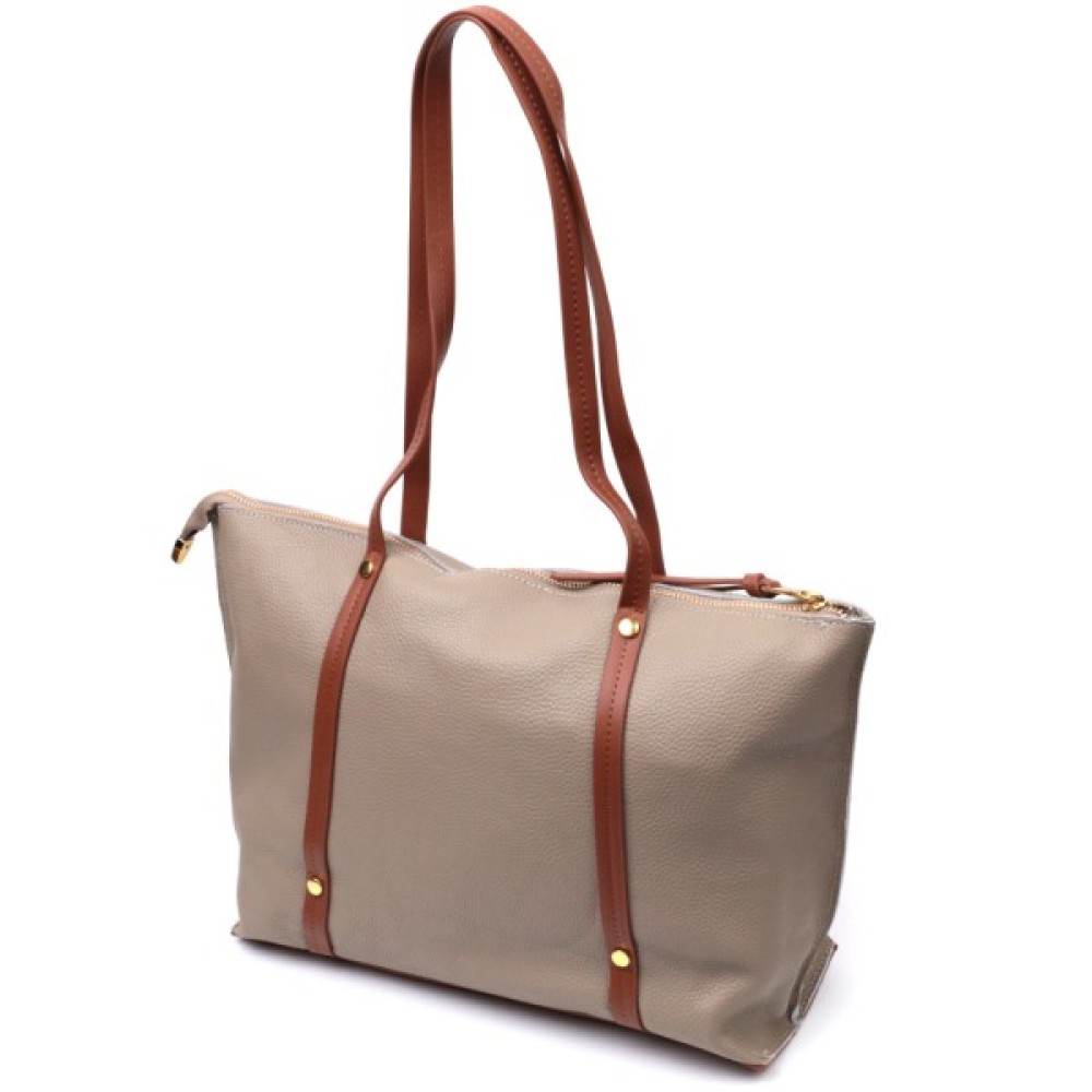 Велика жіноча сумка, у поєднанні двох кольорів бежевого та коричневого. Пошито виріб з натуральної шкіри флотар, яка невибаглива у догляді та довго носиться.