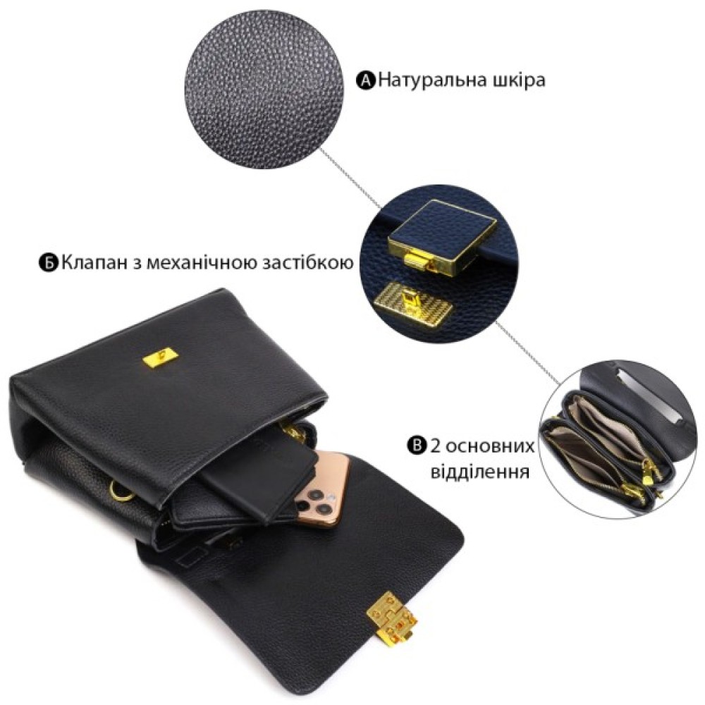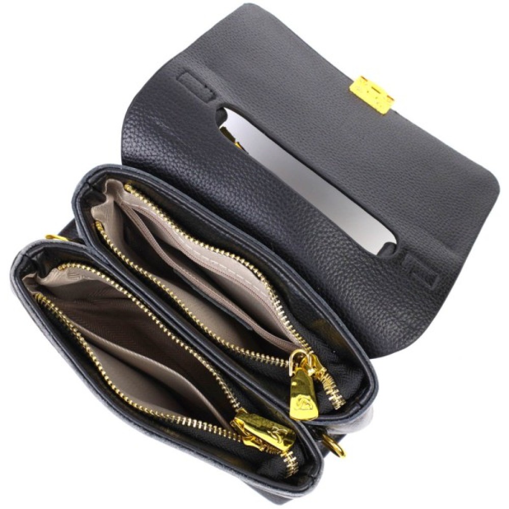 Зручна сумка з натуральної м'якої шкіри високої якості. Виріб дуже зручний, можна носити на плечі, через плече та в руці. Модель доповнена фурнітурою кольору жовтого золота. Аксесуар має два основні відділення на блискавках, у яких дві кишеньки - на блискавці та відкритого типу, також модель має знімний плечовий ремінь. Модель закривається клапаном на механічну застібку. Ідеальний варіант для будь-якої дівчини, на будь-який сезон.