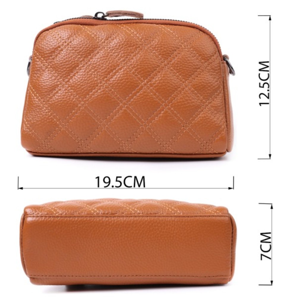 Невелика сумка для жінок із натуральної шкіри високої якості. Виріб дуже зручний, можна носити на плечі, руках і на кисті, для цього є шкіряний ремінець, що знімається і знімний кистьовий ремінь. На лицьовій стороні сумка прошита ромбами, що надає особливого шарму виробу. Модель доповнена фурнітурою кольору темного срібла. Аксесуар має два відділення, що закриваються на блискавки, дві кишеньки - одна на блискавці та одна відкритого типу всередині та одна кишеня на блискавці на тильній стороні. Якщо Вам потрібен варіант повсякденної сумки, яка відмінно підійде як вечірня, то ця модель ідеальний варіант.