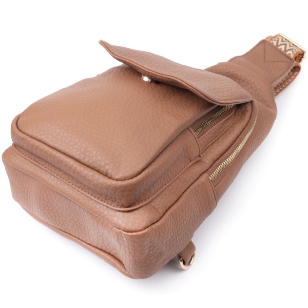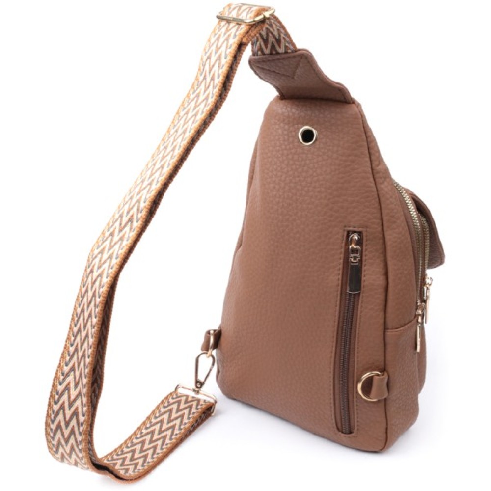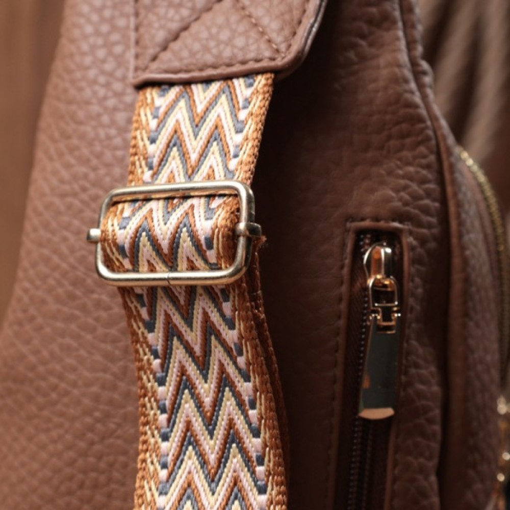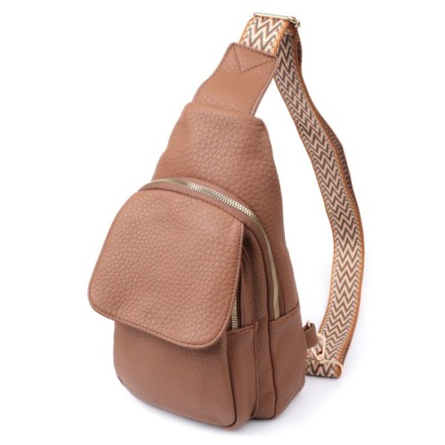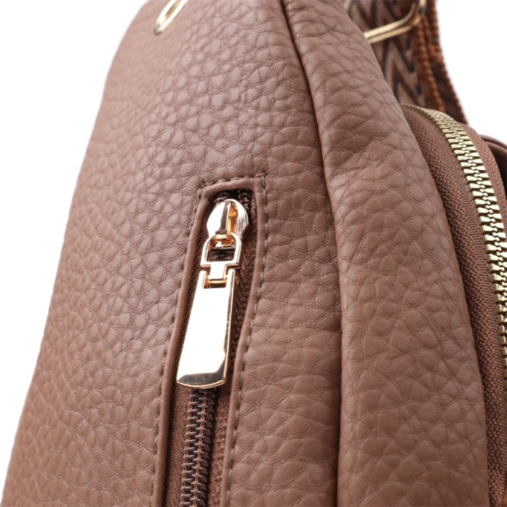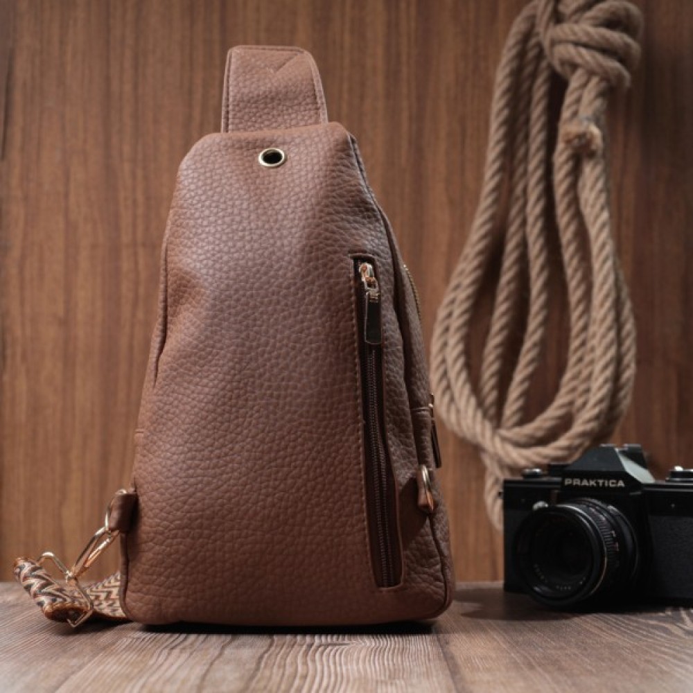 Практична жіноча слінг сумка з зернистої екошкіри в стильний коричневий колір.