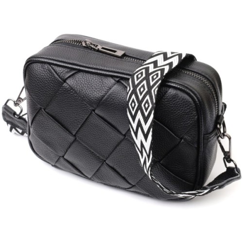 Сумка, Vintage, Жіноча, з, плетіннями, з, натуральної, шкіри, Чорна, 22406