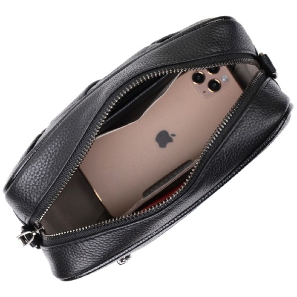 Гарна жіноча сумка з ромбоподібною палітуркою на лицьовій стороні. Виріб пошитий з якісної натуральної шкіри, яка довго носиться і не втрачає свого первісного вигляду. Аксесуар складається з одного основного відділення всередині якого розташована кишеня відкритого типу і кишеня на блискавці, також зовні розташована кишеня на блискавці, на тильній стороні. Носити сумку можна в руці як клатч, на плечі та через плече, для цього є текстильний ремінь, що знімається. У виробі використано якісну фурнітуру кольору темного срібла. Універсальний варіант сумки як на вечір так і як сумочка на кожен день.