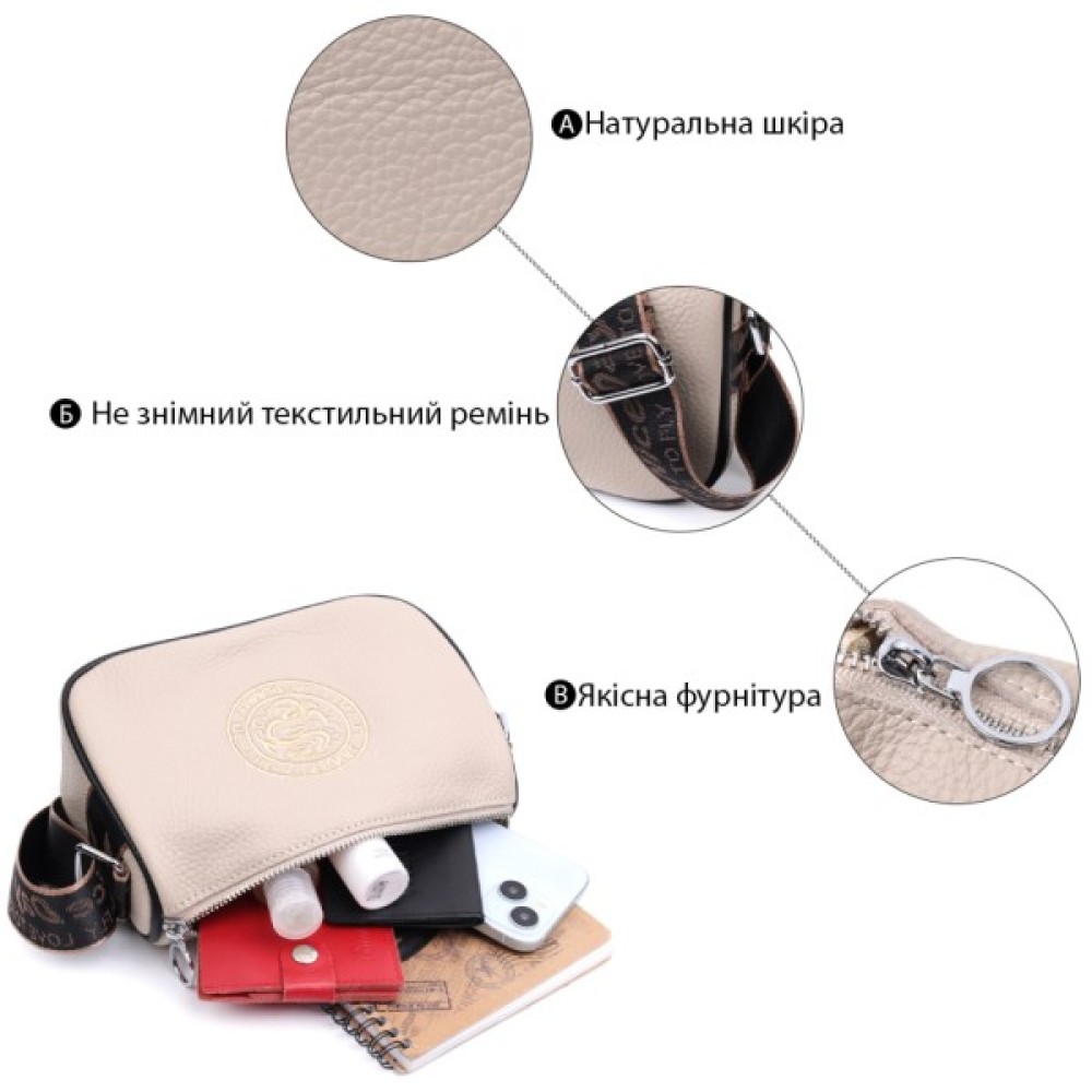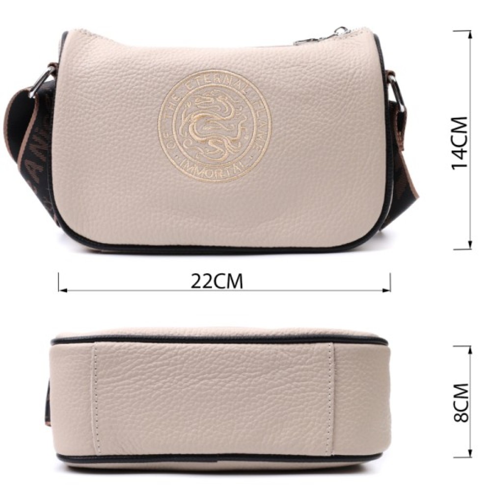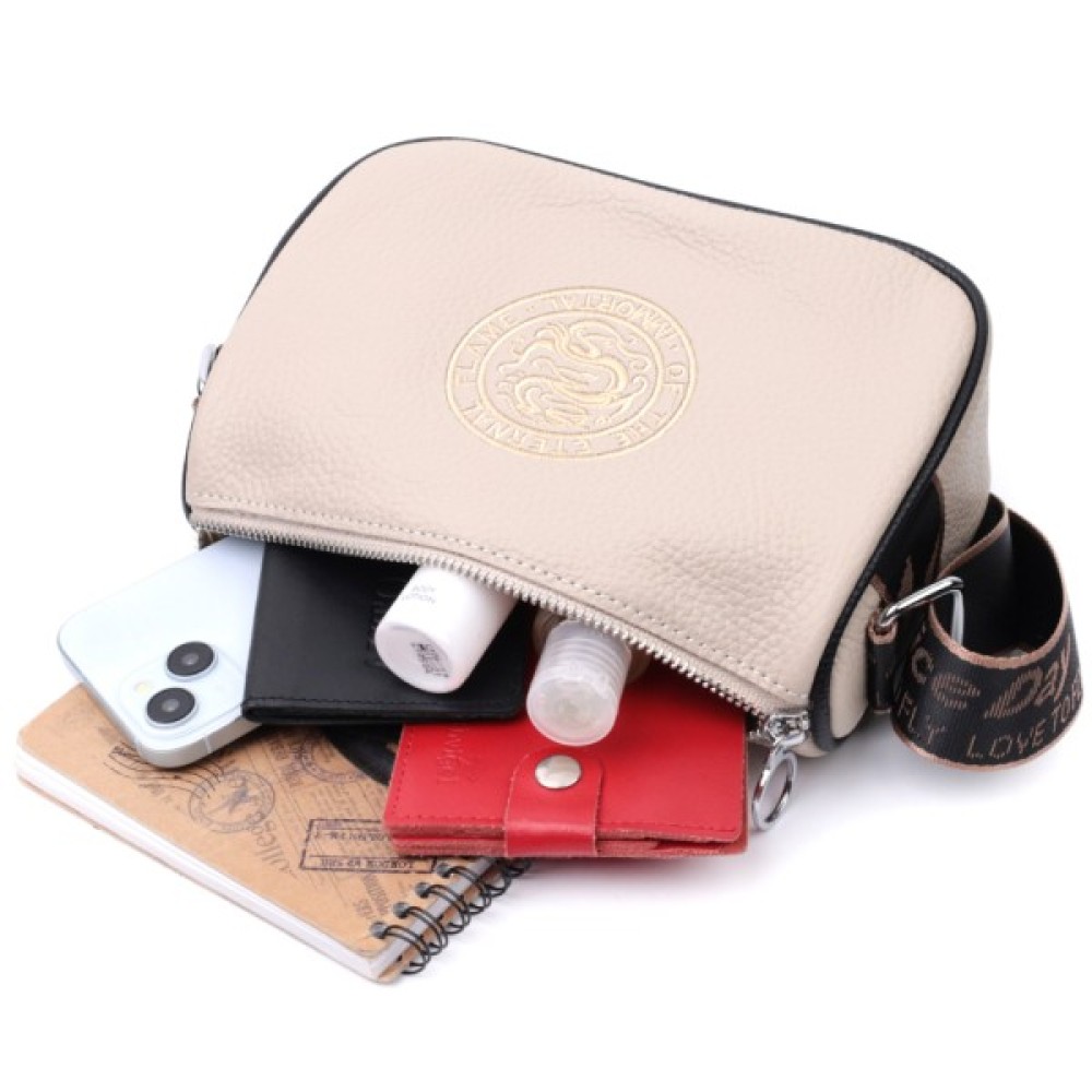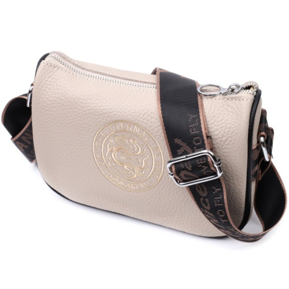 Сумка Vintage Жіноча з вишивкою на лицьовій стороні з натуральної шкіри Бежева (22625)