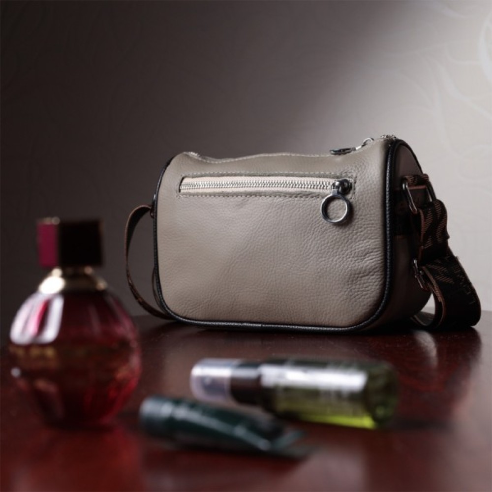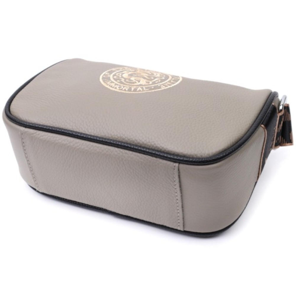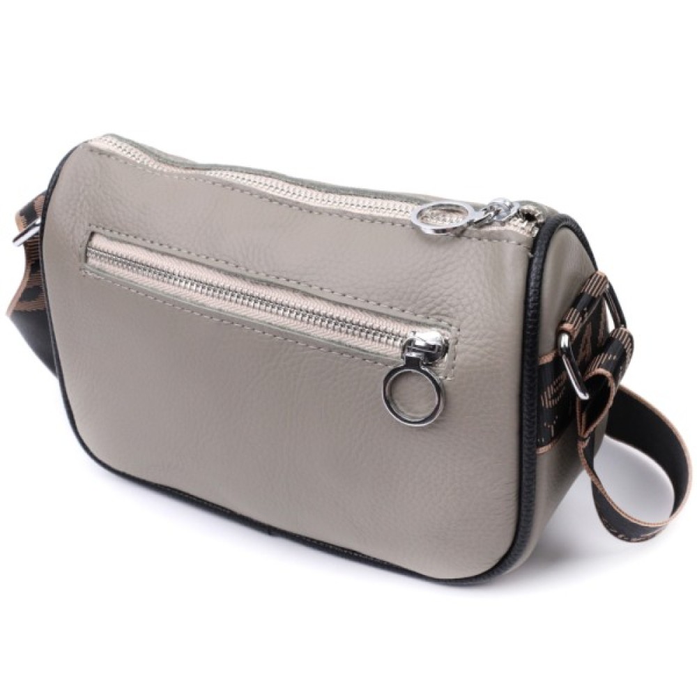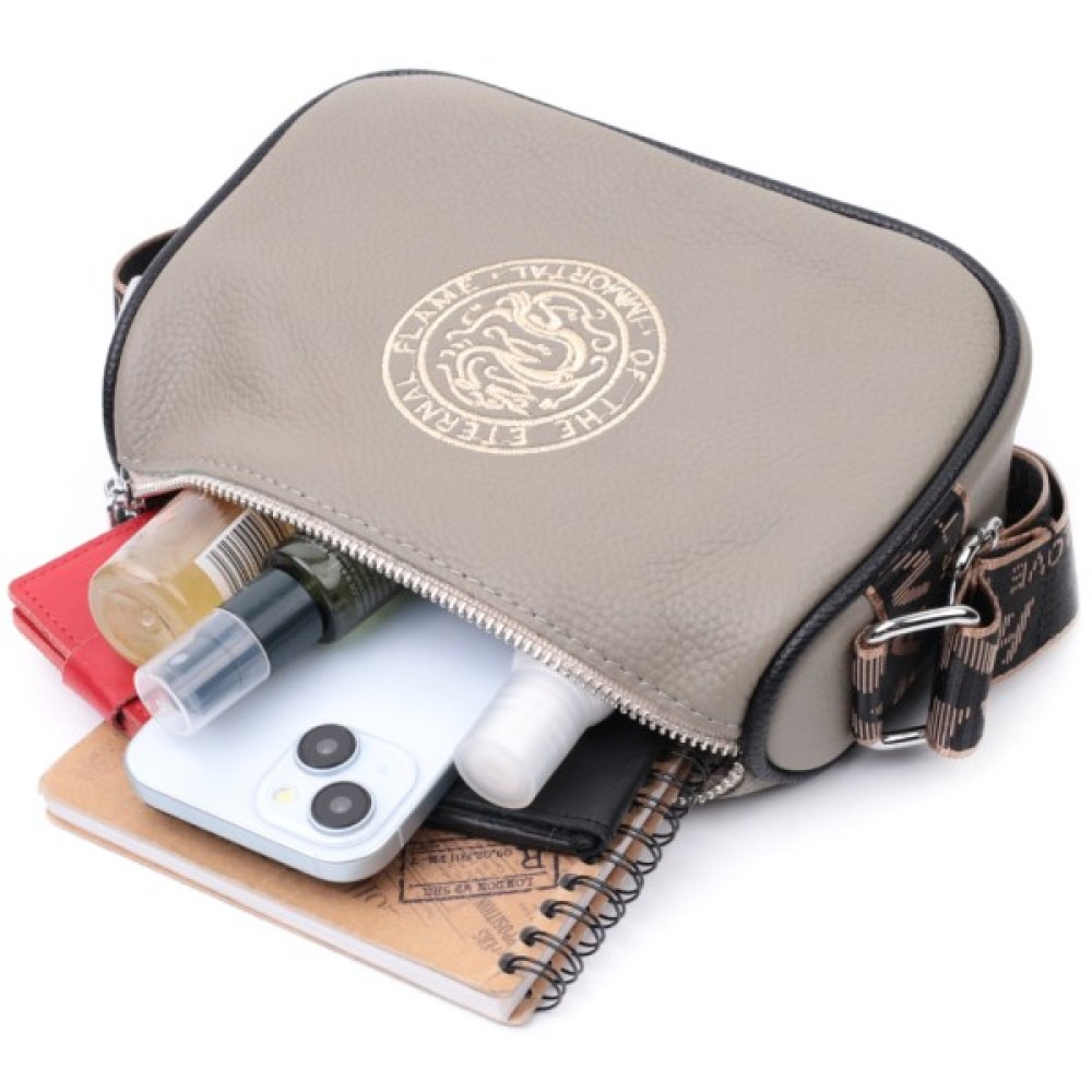 Стильна жіноча сумка з вишивкою по центру з натуральної якісної шкіри. Аксесуар складається з основного відділення, яке закривається на блискавку, потайної кишені на блискавці та кишені відкритого типу всередині, а також кишені на блискавці зовні на тильній стороні. Носити сумку можна в руці, під рукою, на плечі та через плече, для цього є не знімний текстильний ремінь. В аксесуарі використано якісну фурнітуру кольору срібла.