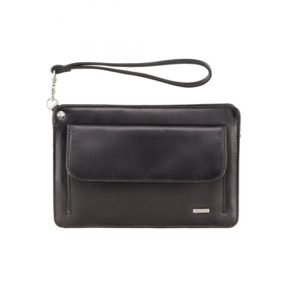 Барсетка оснащена міцною фірмовою фурнітурою та блискавками-застібками на всіх відділеннях. Усередині основного відділення є невелика додаткова секція також із застібкою-блискавкою, що гарантує підвищену безпеку. Кишеня на клапані розмістилася на лицьовій частині виробу. Є фірмова нашивка з логотипом бренду Вісконті.