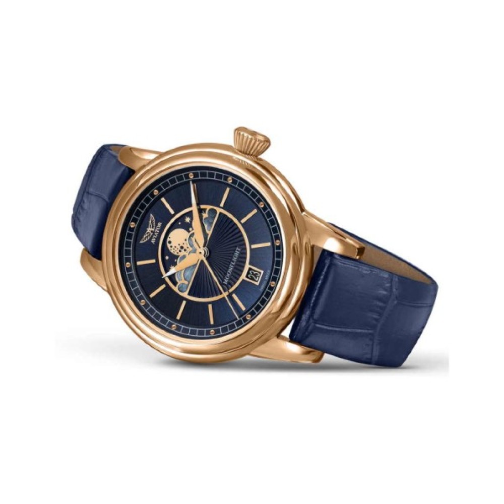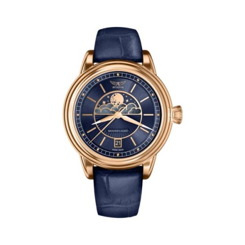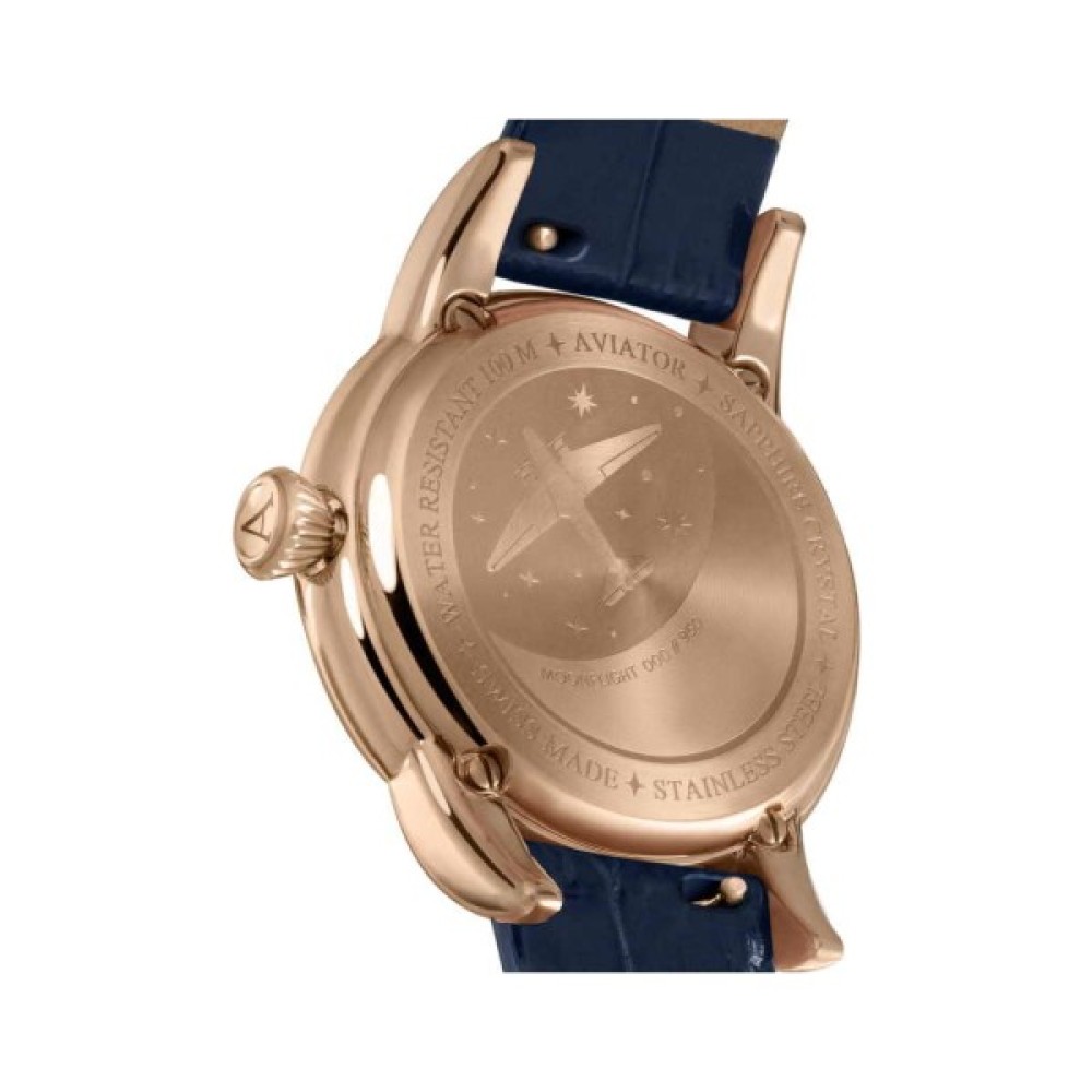 У колекції годинника AVIATOR MoonFlight класичні елементи стилю ар-деко ефектно поєднуються з фазами Місяця. моделі, що ввійшли до неї, присвячені кращому літаку тих часів. З ними ви будете оточені зірками у вишуканій атмосфері від-кутюр.