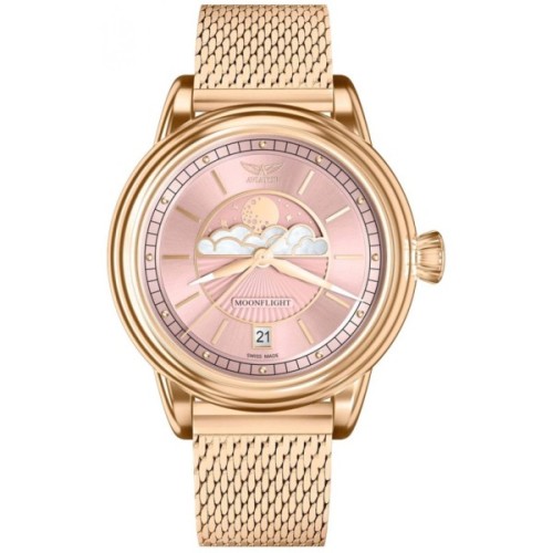 У колекції годинника AVIATOR MoonFlight класичні елементи стилю ар-деко ефектно поєднуються з фазами Місяця. моделі, що ввійшли до неї, присвячені кращому літаку тих часів. З ними ви будете оточені зірками у вишуканій атмосфері від-кутюр.
