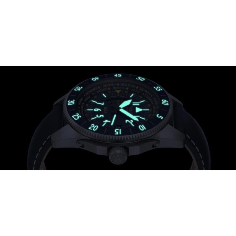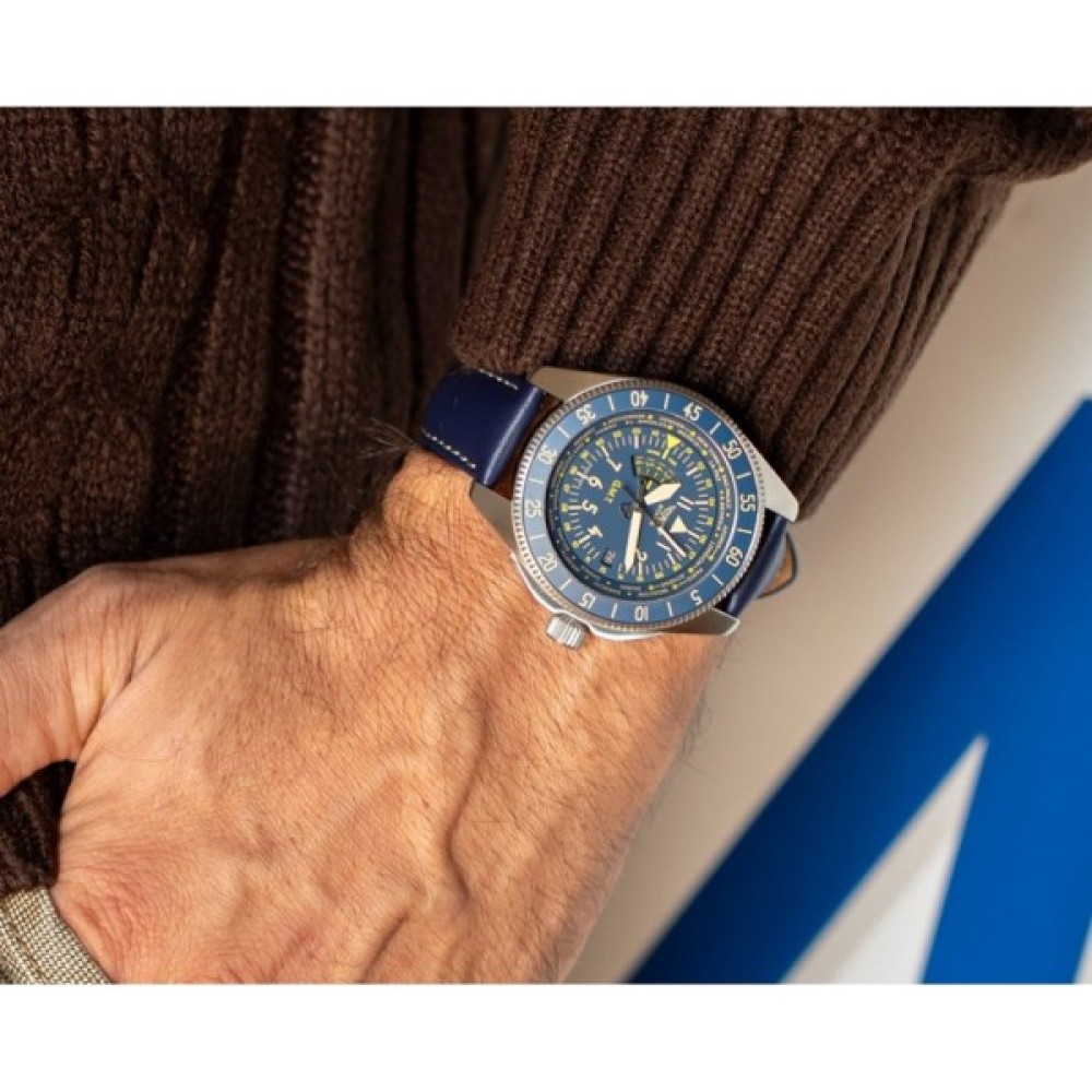 Годинник AVIATOR має додатковий індикатор часу на позиції "9 годин", де можна встановити та відстежувати другий часовий пояс. Наведіть заводну головку в позицію I і встановіть точний час для домашнього часового поясу та ще одного пояса на вибір.