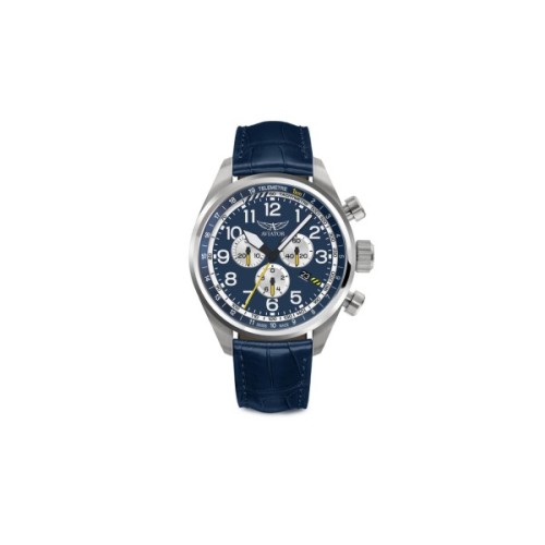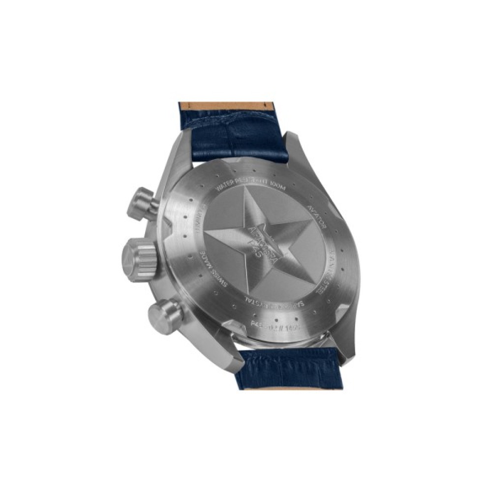 Під час Другої світової війни забезпечення авіаційної підтримки літаками Airacobra було запорукою успіху сухопутних операцій. Годинник AVIATOR Airacobra P45 Chrono своїм інструментальним виглядом не поступається авіаційному прототипу і вселяє впевненість. Як і легендарний військовий літак, вони витримані у ретро-стилі. При створенні AVIATOR Airacobra P45 Chrono використовуються найкращі матеріали, що забезпечує годиннику військову точність та класичний вигляд. Своєю високою контрастністю стрілки та годинникові мітки нагадують оформлення кабіни пілота. Форма корпусу у годинника завжди буде актуальною, а виконаний в стилі крокодилової шкіри ремінець вносить елемент розкоші. Всі години AVIATOR властива виняткова надійність і прагнення увічнити пам'ять про віхи в історії авіації.