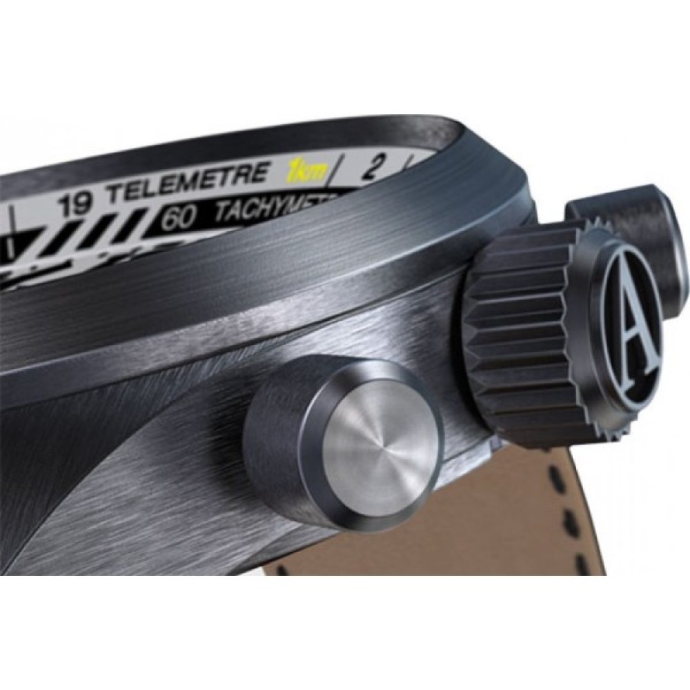 Матований корпус AVIATOR Airacobra P45 Chrono з діаметром 45 міліметрів витриманий у строгому класичному стилі і має правильні пропорції. Своїм оформленням цей годинник повертає нас у давно минулу епоху. Випрямлені лапки корпусу акцентують вигнуті лінії корпусу і надають годинникам вигляду ретро. Крім того, масивна головка настільки зручна у використанні, що переводити час можна навіть у рукавичках пілота зразка 1940-х років.