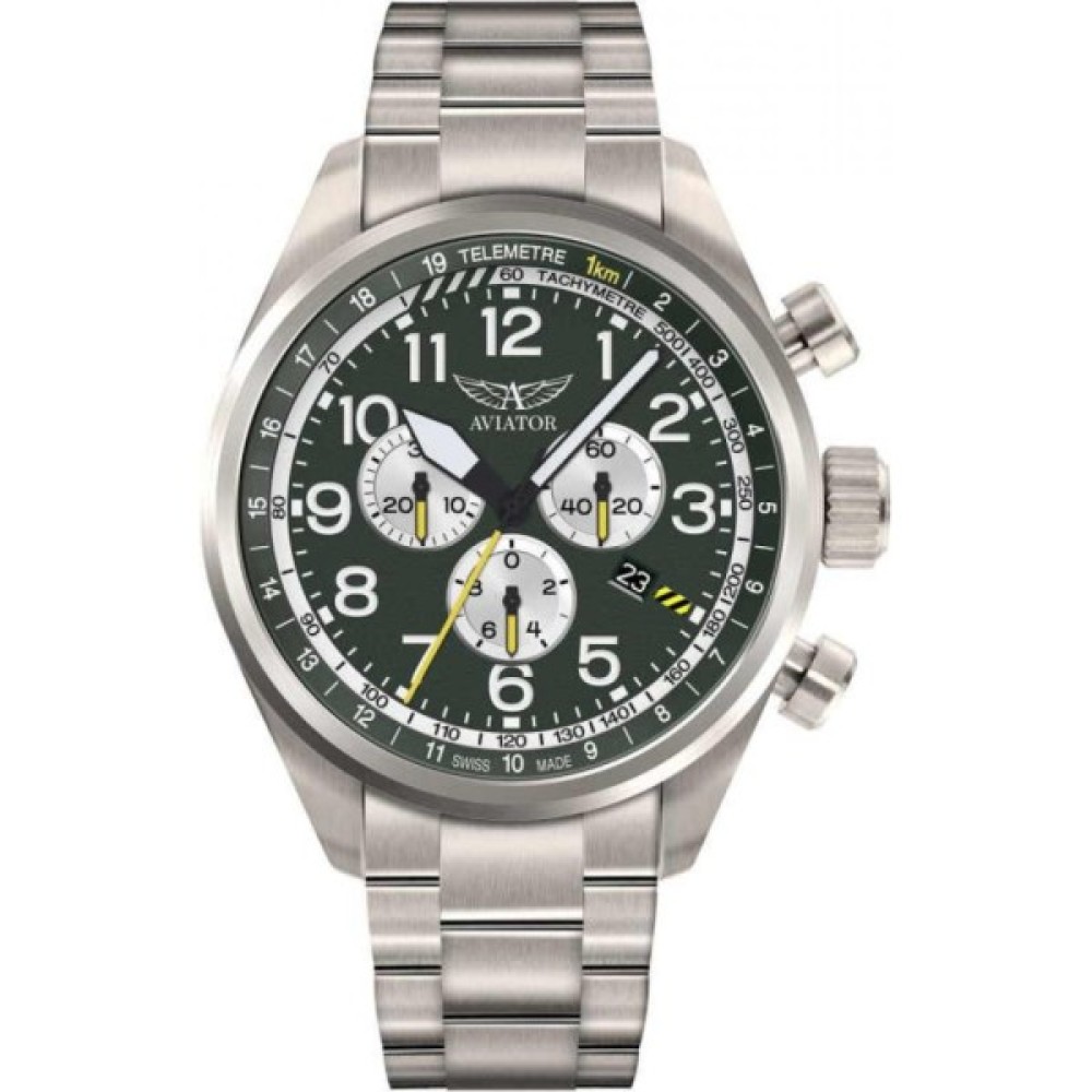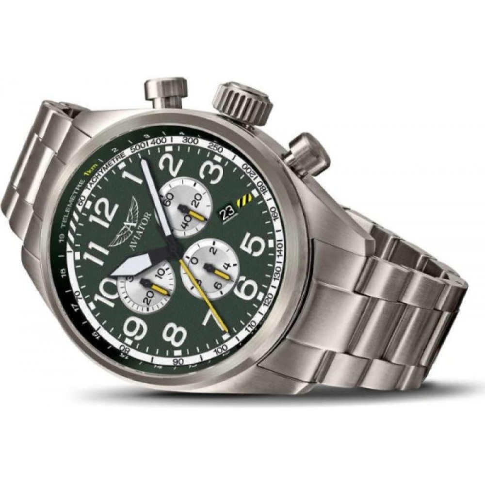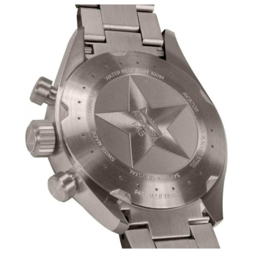 Під час Другої світової війни забезпечення авіаційної підтримки літаками Airacobra було запорукою успіху сухопутних операцій. Годинник AVIATOR Airacobra P45 Chrono своїм інструментальним виглядом не поступається авіаційному прототипу і вселяє впевненість. Як і легендарний військовий літак, вони витримані у ретро-стилі. При створенні AVIATOR Airacobra P45 Chrono використовуються найкращі матеріали, що забезпечує годиннику військову точність та класичний вигляд. Своєю високою контрастністю стрілки та годинникові мітки нагадують оформлення кабіни пілота. Форма корпусу у годинника завжди буде актуальною, а виконаний в стилі крокодилової шкіри ремінець вносить елемент розкоші. Всі години AVIATOR властива виняткова надійність і прагнення увічнити пам'ять про віхи в історії авіації.