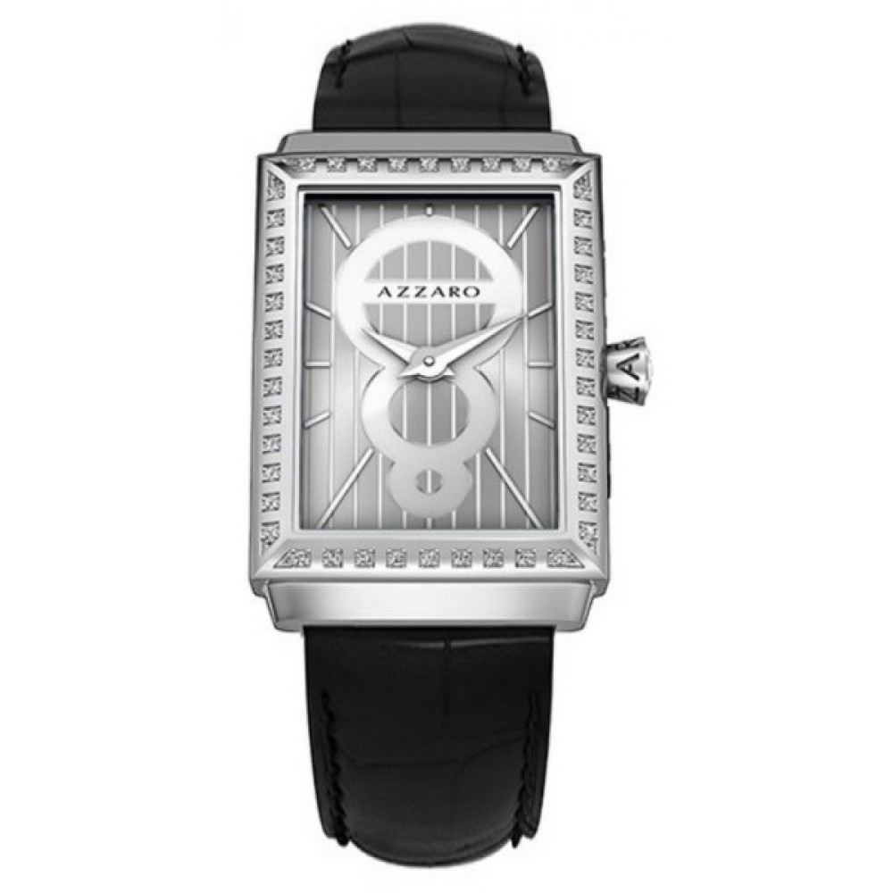 Бренд: Azzaro Колекція: Legend Rectangular Модель: AZ2061.12SB.700 Пол: Чоловічий годинник Механізм: Кварцовий (Калібр механізму Ronda 762) Матеріал корпусу: Корпус з високоякісного сталевого сплаву 316L з високими антикорозійними властивостями. Розміри корпусу: ширина 28 мм, висота 44 мм, товщина 8, 35 мм Скло: Мінеральне Тип браслета: Ремінець зі шкіри луїзіанського крокодила чорного кольору Водозащита: 30 метрів Додатково: Корпус прикрашений 44 діамантами на 0,31 карат.