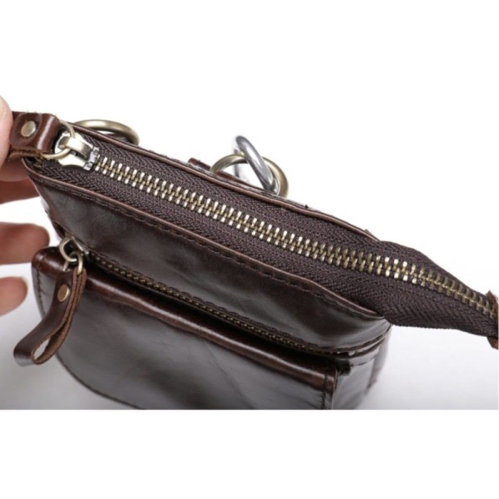 Модель доповнена міцною золотистою фурнітурою, яка гармонійно вписується в дизайн аксесуара. У комплекті йде зйомний текстильний ремінь коричневого кольору, а також карабін для зручності, на який можна причепити ключі.