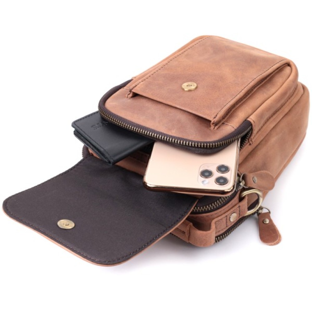Компактна чоловіча сумка із натуральної вінтажної шкіри.