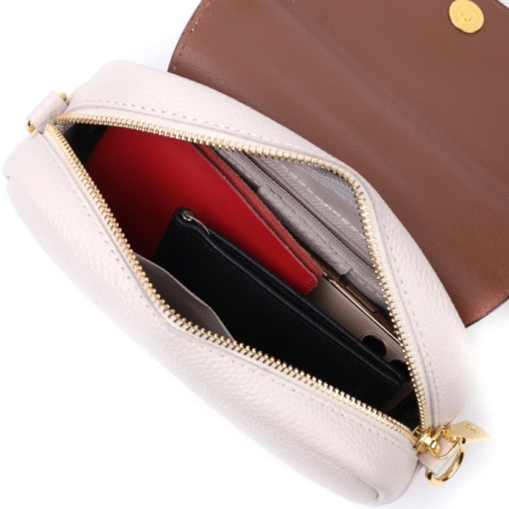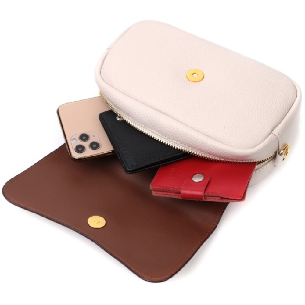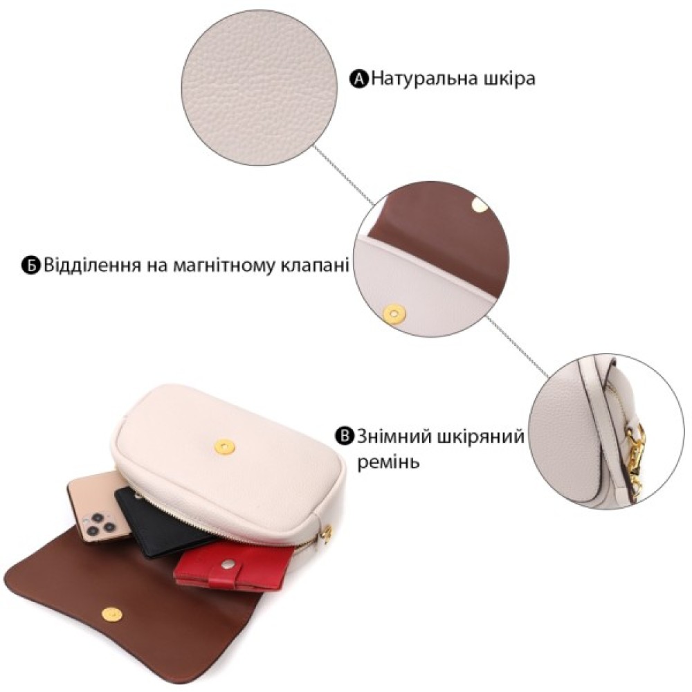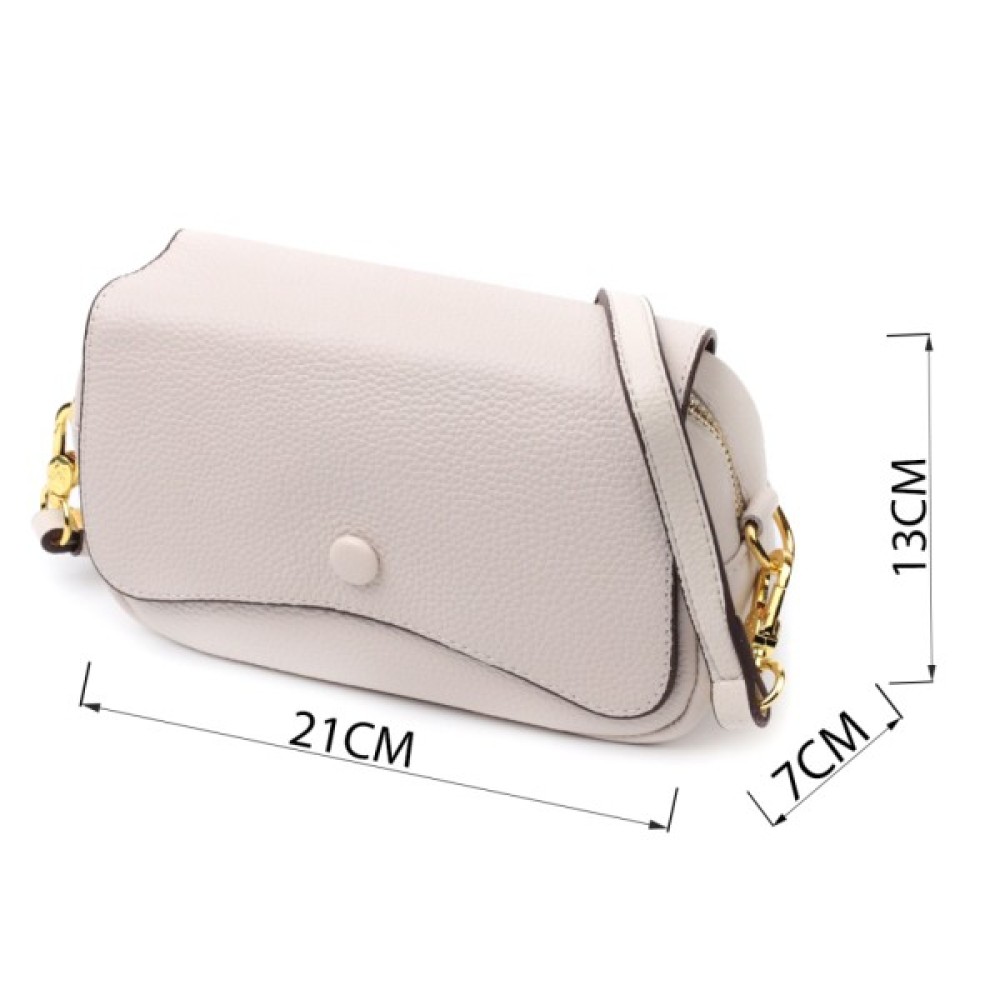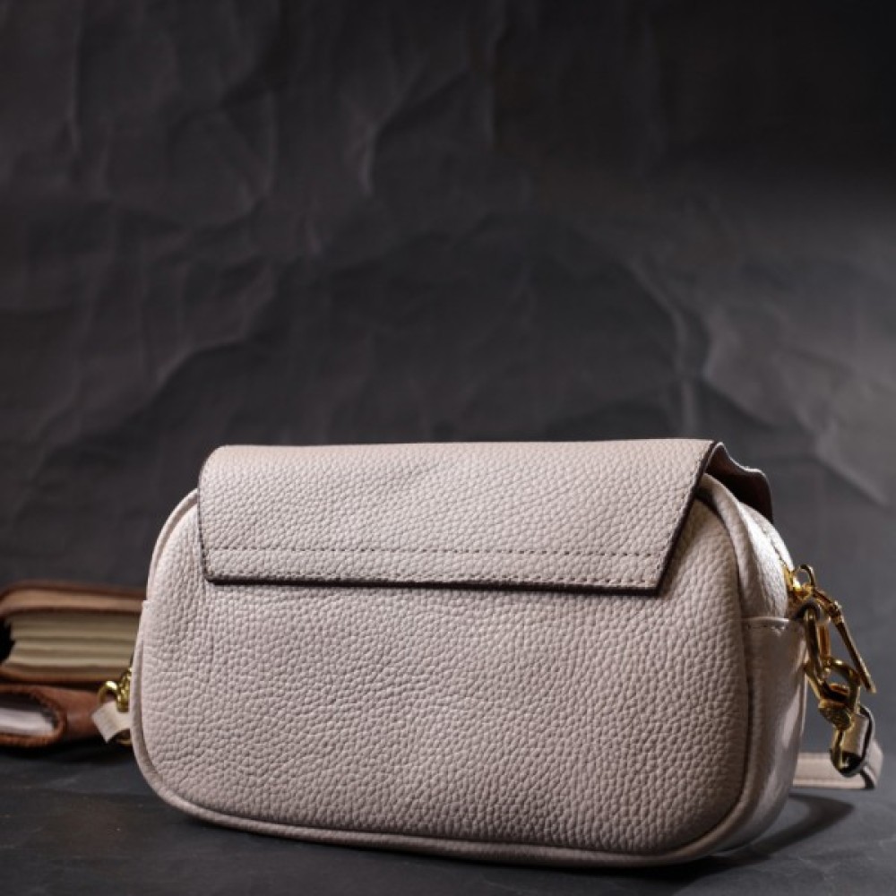 Унікальна сумка жіноча з фігурним клапаном з натуральної шкіри. Аксесуар складається з одного основного відділення, потайної кишені на блискавці та кишені відкритого типу. Носити сумку можна на плечі і через плече, для цього є шкіряний ремінь, що знімається. У виробі використано якісну фурнітуру кольору жовтого золота. Шкіряна сумка – найкращий подарунок для будь-якої дівчини.