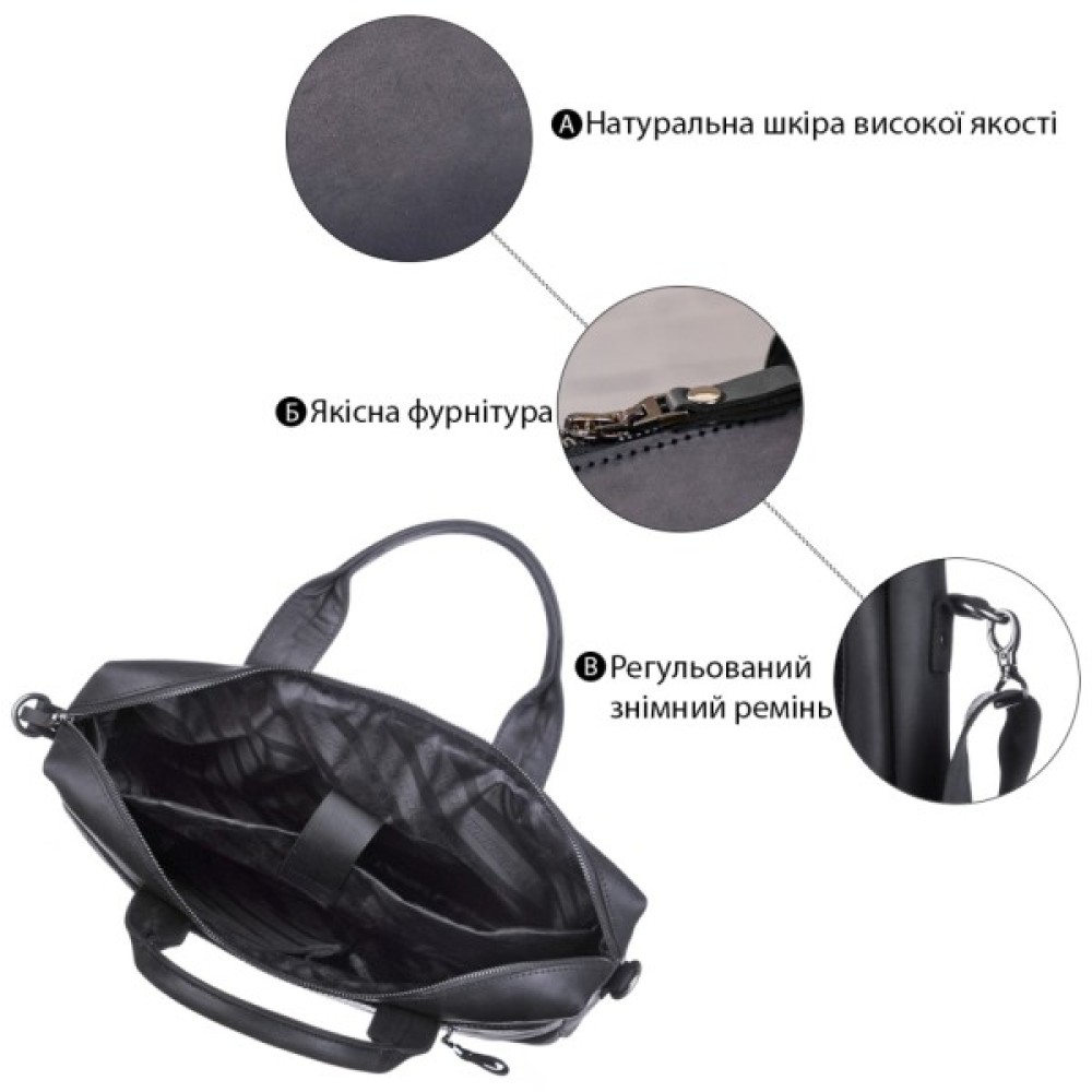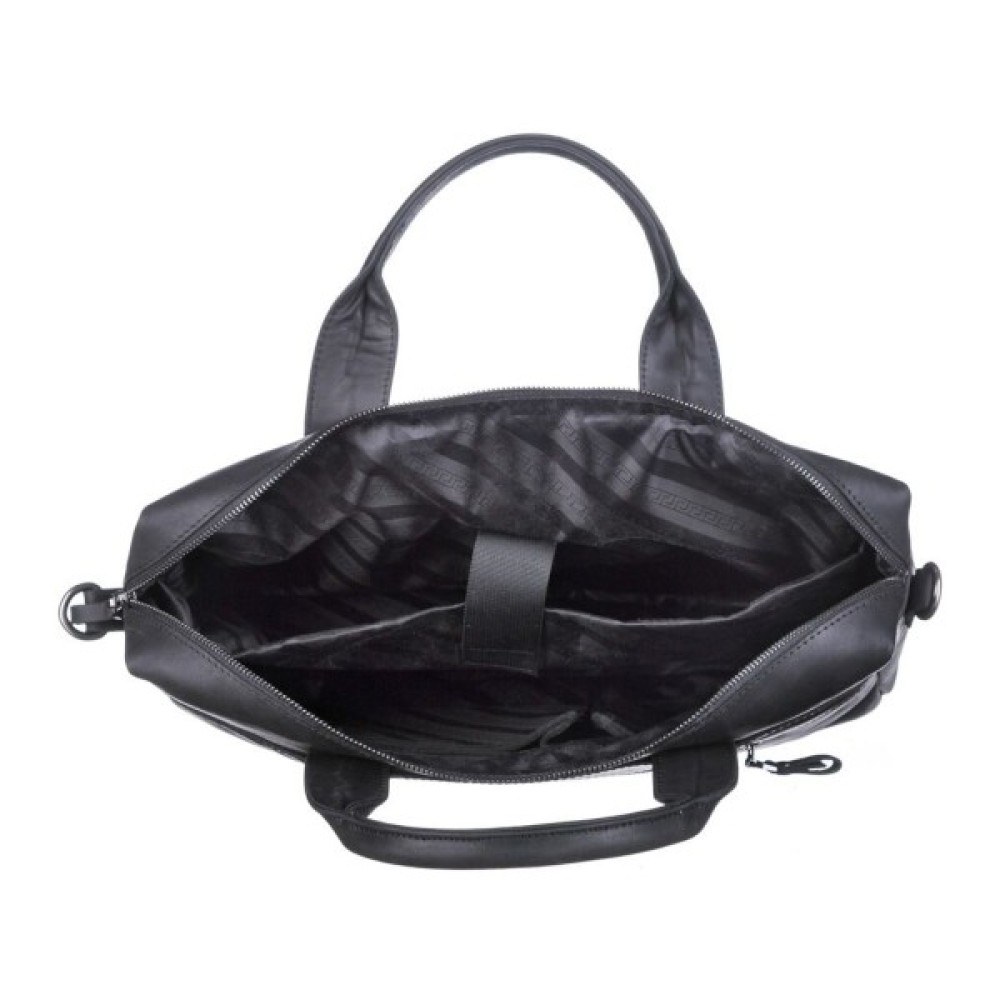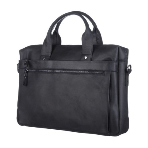 через плече на регульованому ремені з комбінації шкіри та щільного текстилю.