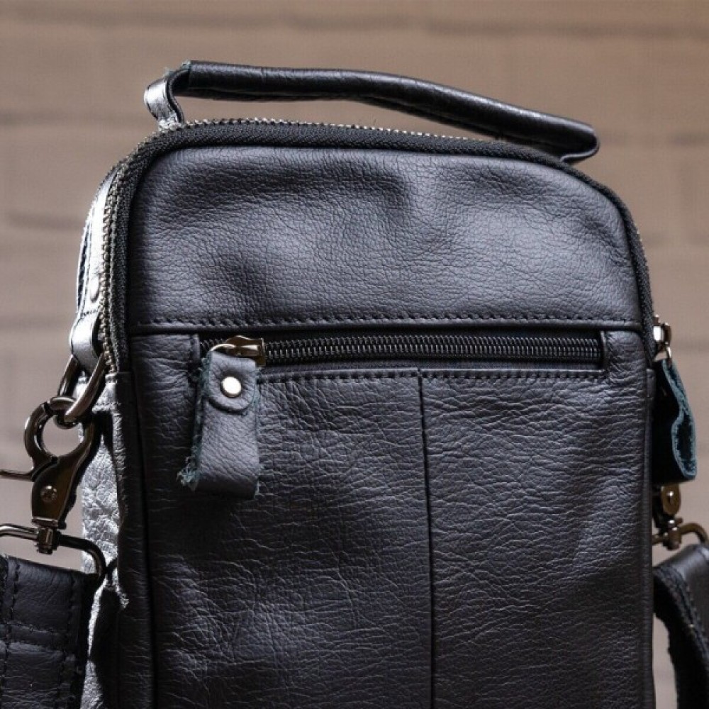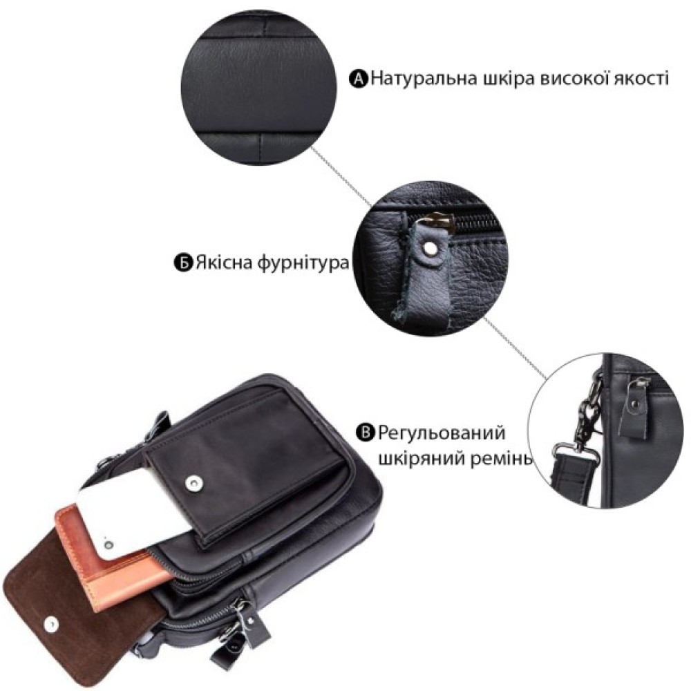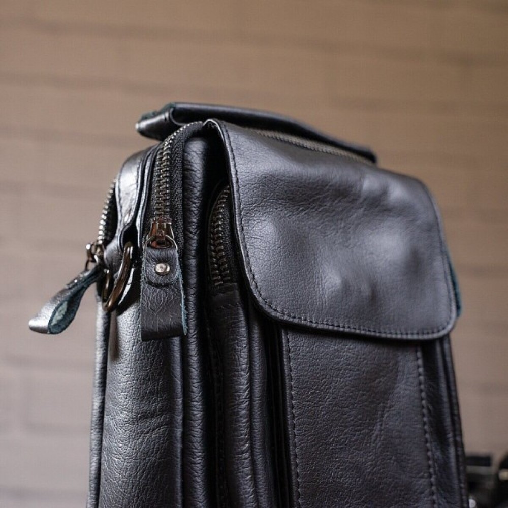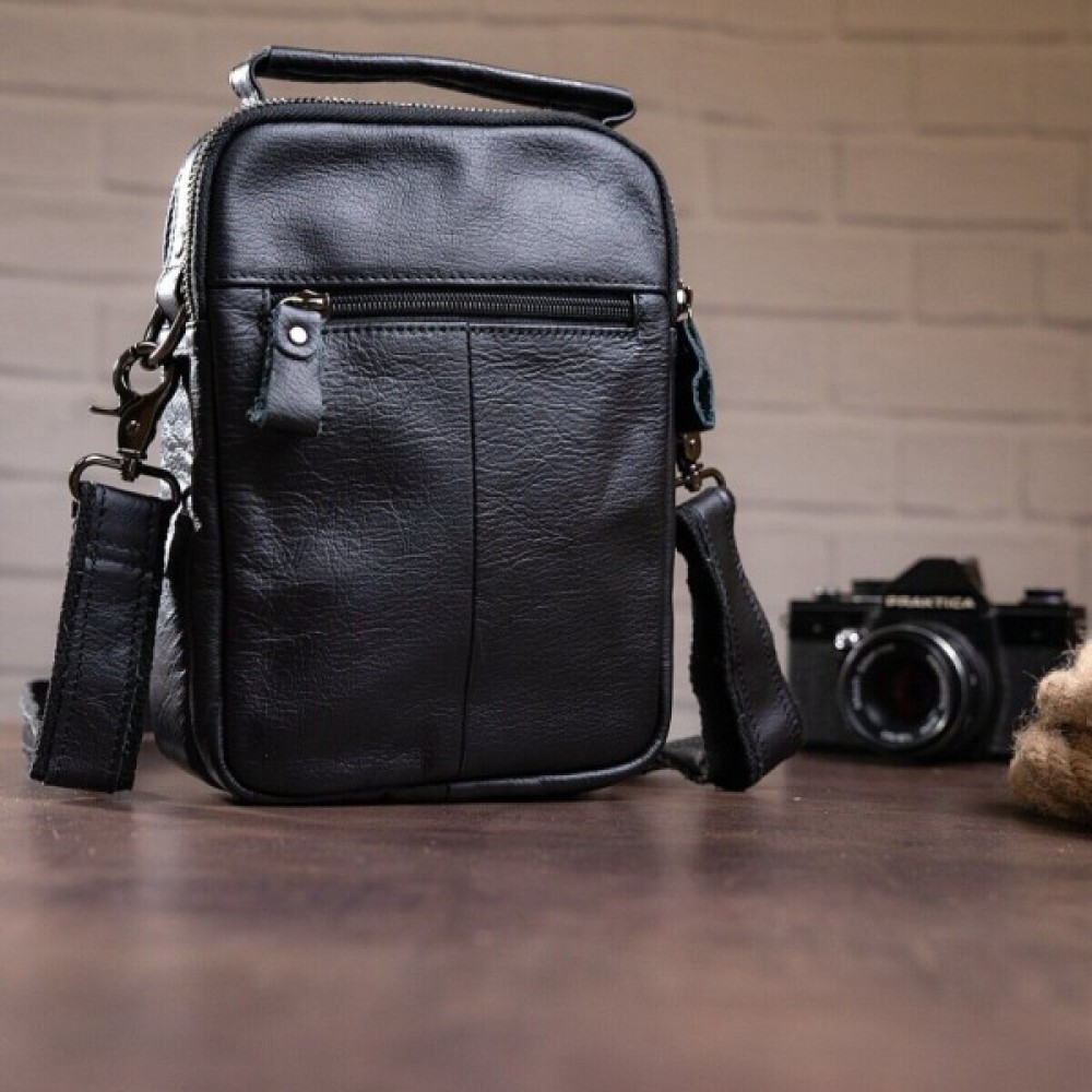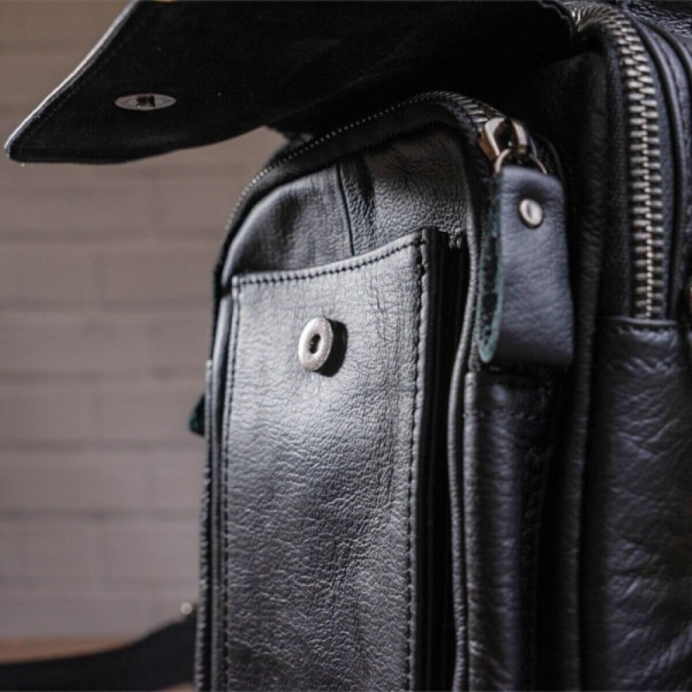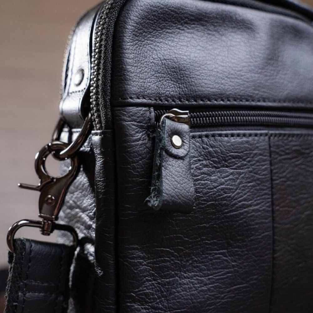 Стильна чоловіча сумка з натуральної шкіри з ремінцем зі шкіряною вставкою, що знімається. По краях аксесуар прошитий чорною ниткою. Всі шви рівні, ниток, що стирчать, немає. Усередині аксесуару щільна текстильна підкладка коричневого кольору. У сумці є ручка для носіння в руках. Дуже сучасна і продумана модель. Виробництво — фабричний Китай хорошої якості. Підійде для щоденного використання. Хороший варіант на роботу або в поїздку. Буде чудовим подарунком з будь-якого приводу.