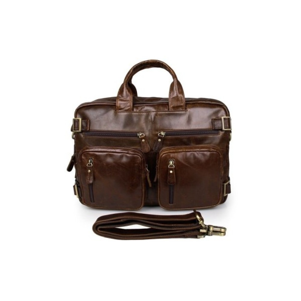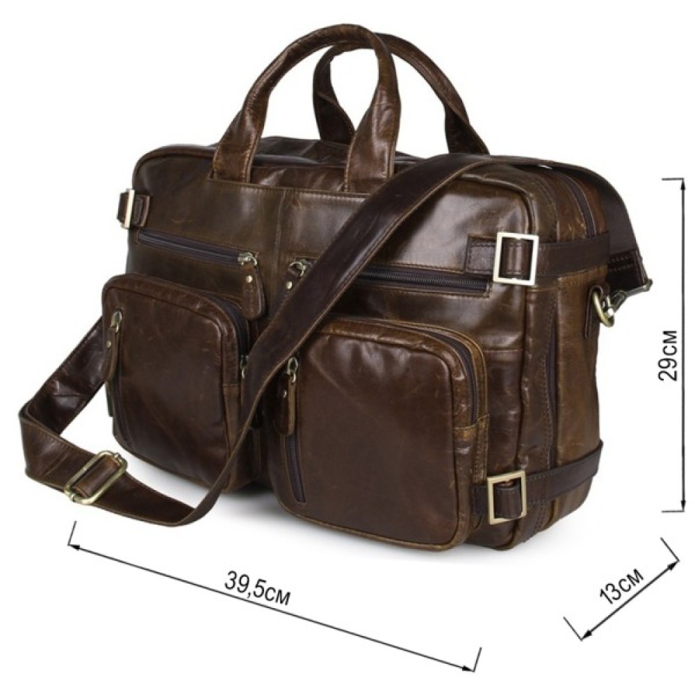 Особливості дві шкіряні ручки; знімний регульований плечовий ремінь; шість кишень на блискавках на лицьовій стороні