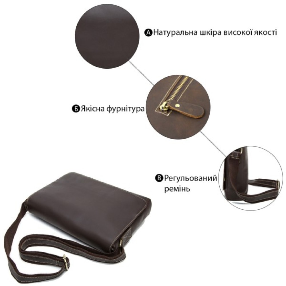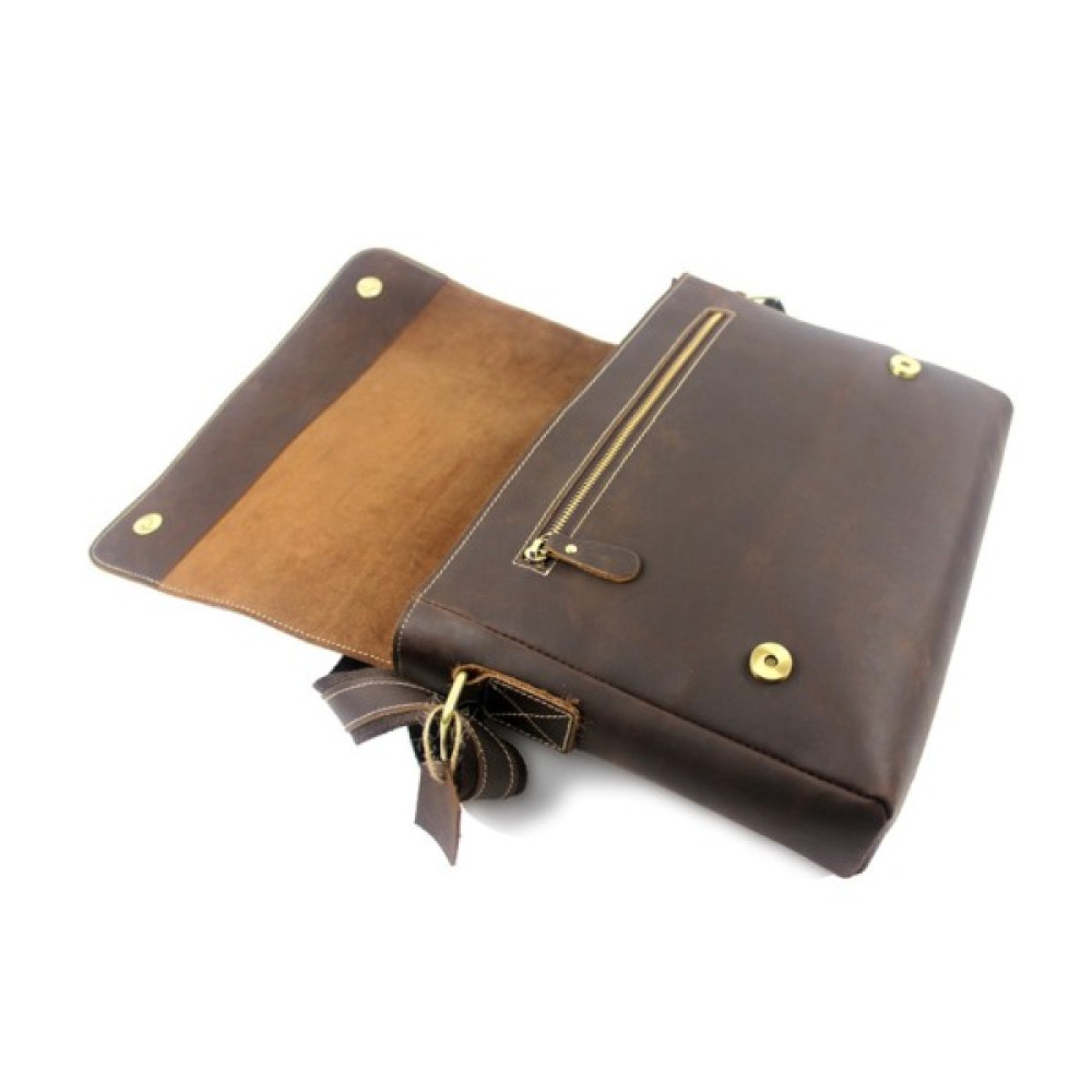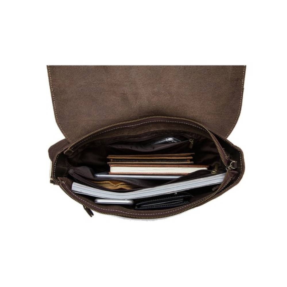 Вінтажна ділова сумка горизонтального типу з натуральної шкіри високої якості. Особливістю шкіри Crazy horse є поява подряпин і потертостей в процесі експлуатації аксесуара. Модель дуже солідно виглядає. Аксесуар підійде під ваш діловий стиль. Прекрасний варіант для роботи або навчання. По краях сумка прошита світлим рядком. У комплекті йде пилозахисний чохол.