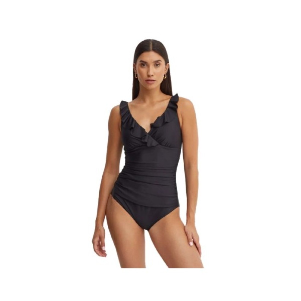 Відкрийте для себе надзвичайну елегантність і вишуканий стиль з нашим жіночим суцільним купальником прикрашений витонченими рюшами на декольте.