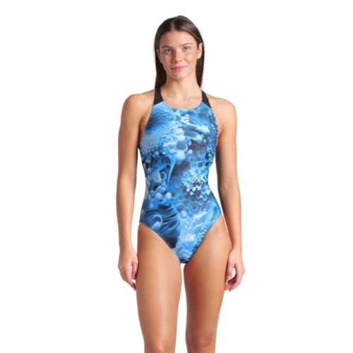 Купальник Blue Flowers з абстрактним квітковим принтом на передній частині ідеально підходить для регулярних тренувань і занять фітнес-плаванням.