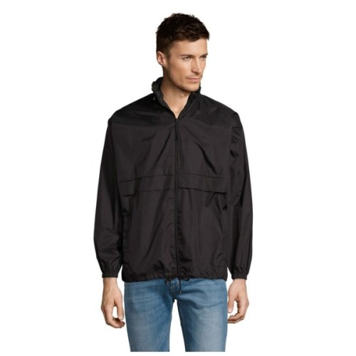 Вітрівка може бути складена в кишеню і закріплена еластичним ременем на талії.
