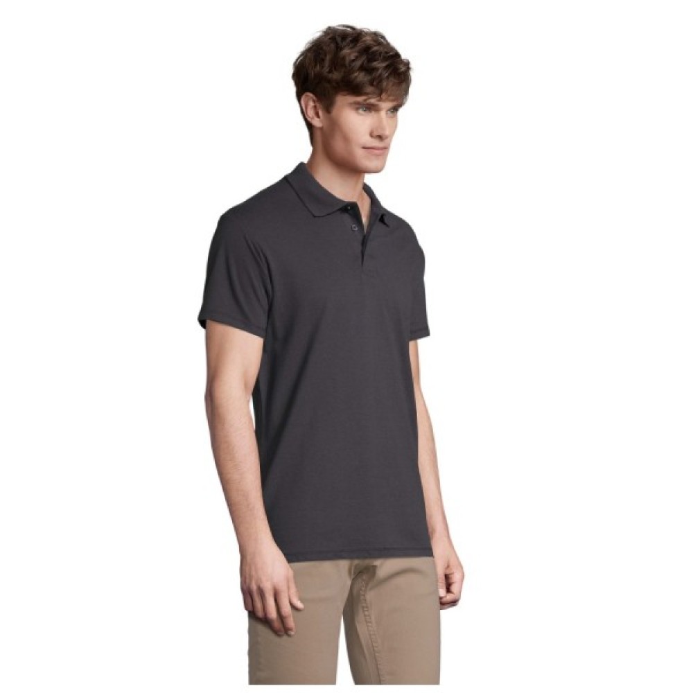 Висока якість та класичний чоловічий крій. Комір оброблений рібом (резинка 1х1), манжети мають подвійний плоский шов. Посилена планка з трьома гудзиками в тон, прямий низ поло з бічними розрізами для кращої посадки по фігурі. Запасний гудзик на внутрішній бічній строчці виробу.