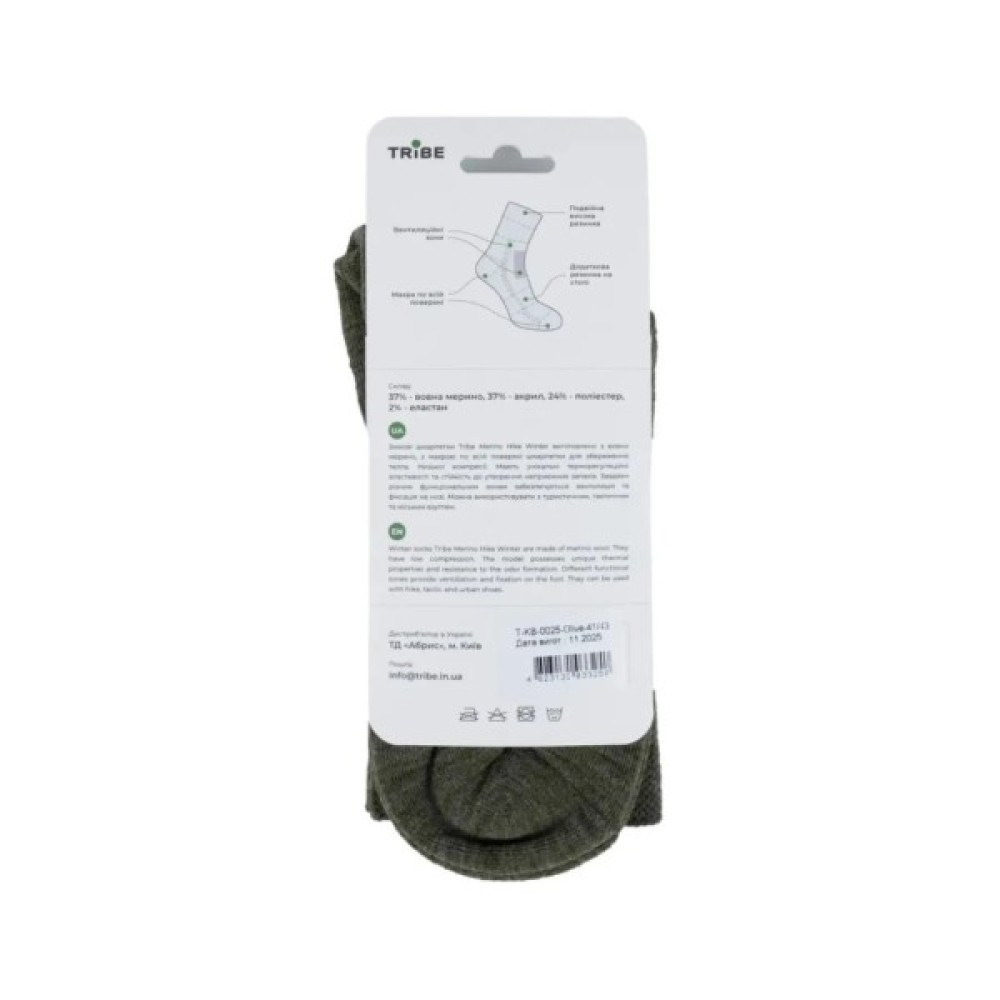 Шкарпетки Tribe Merino Hike Winter T-KB-0025-olive, 41-43 (T-KB-0025-olive-41-43)