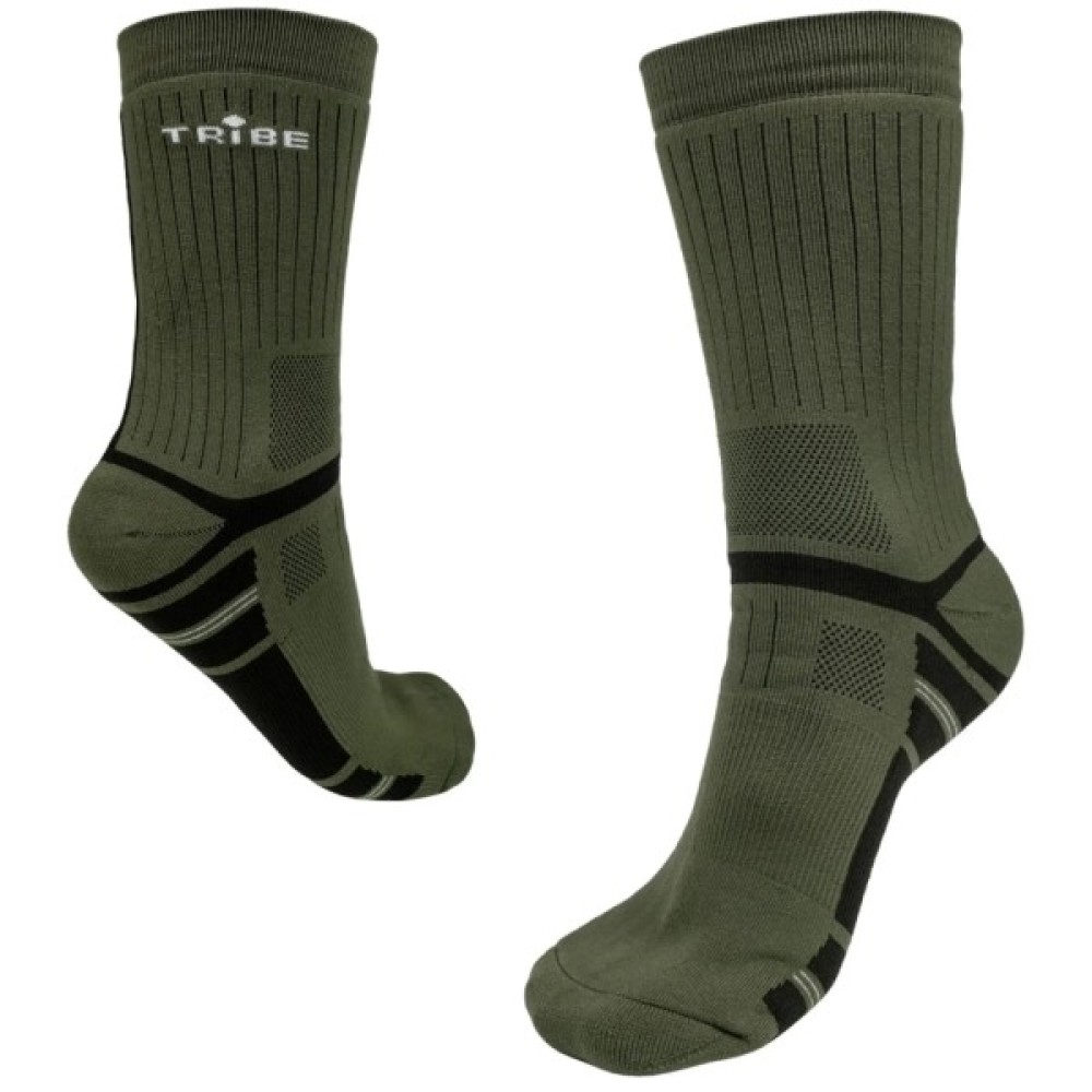Зимові термошкарпетки Tribe Trekking Winter розроблено для активного використання у холодний період року з туристичним або тактичним взуттям з мембраною та без. Мають різні функціональні зони для вентиляції та фіксації на нозі. Захищають ноги від натирань та ефективно відводять вологу під час значних фізичних навантажень.