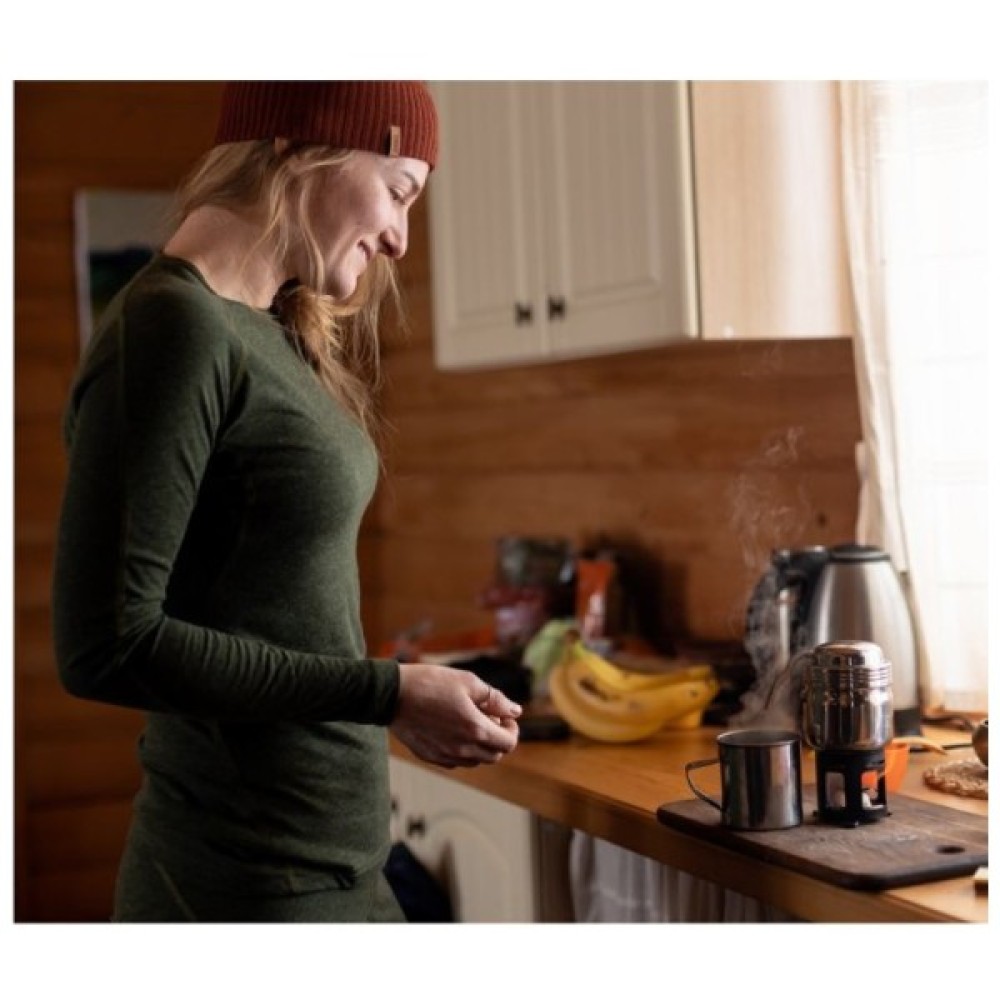 Жіноча термофутболка приталеного анатомічного крою з довгим рукавом. У її складі є вовна меринос (15%), яка відома своїми природними зігріваючими властивостями. Завдяки пропорції вовни та поліестру (15/85), цю річ комфортно використовувати у подорожах протягом декількох днів та тривалих походах, адже вона стійкіша до утворення запаху і швидше сохне.