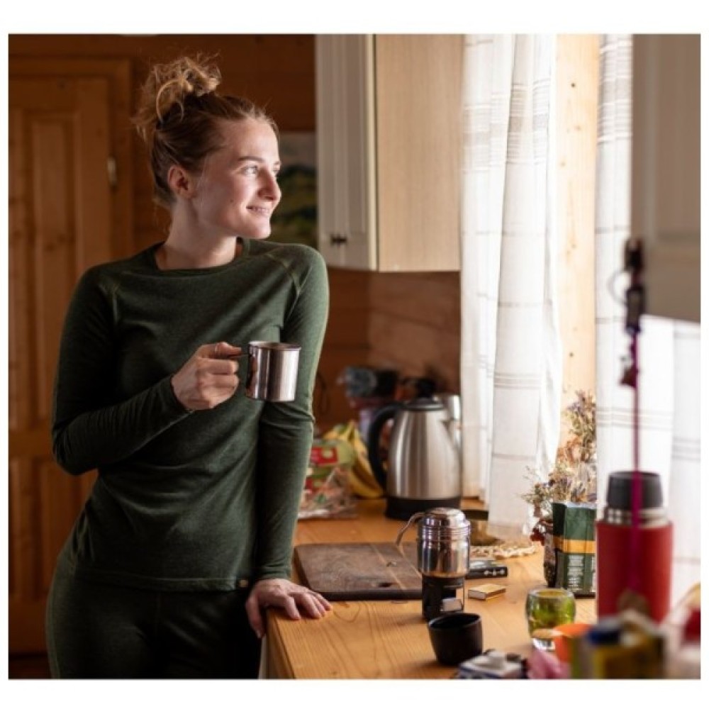 Жіноча термофутболка приталеного анатомічного крою з довгим рукавом. У її складі є вовна меринос (15%), яка відома своїми природними зігріваючими властивостями. Завдяки пропорції вовни та поліестру (15/85), цю річ комфортно використовувати у подорожах протягом декількох днів та тривалих походах, адже вона стійкіша до утворення запаху і швидше сохне.