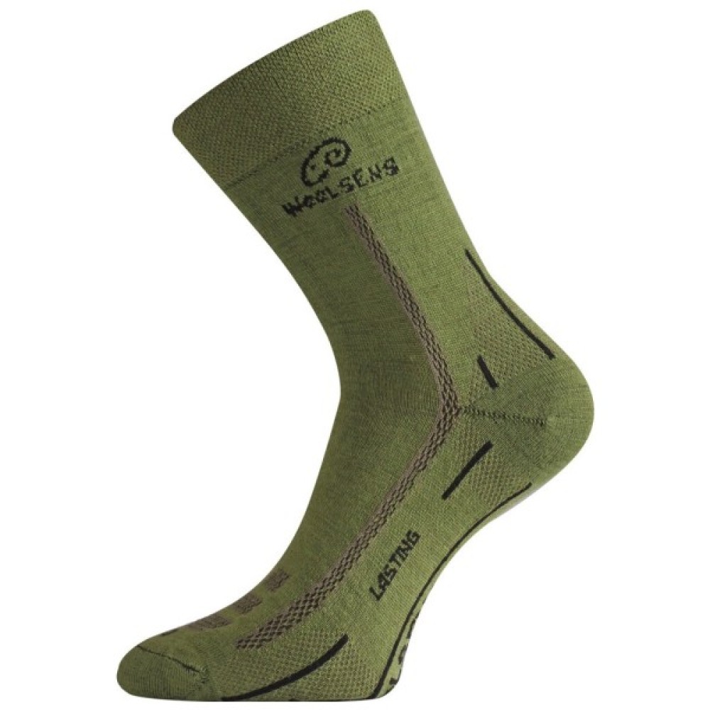 Шкарпетки від бренду Lasting для активного відпочинку. Виготовлені із суміші шерсті Merino та штучних волокон. Lasting WLS здатні відводити вологу, а також мають антибактеріальні властивості. Розробники використали тонкий шов типу Россо, який не натирає. Сітчаста область на підйомі забезпечує кращу циркуляцію повітря. Зони носка та п`ятки посилені для кращої зносостійкості шкарпеток.