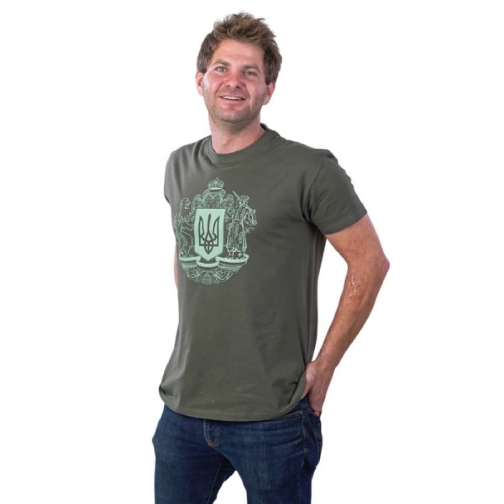 Футболка чоловіча зі стильним принтом Герб України, горловина з круглим вирізом, колір хакі, від французького бренду Sols.