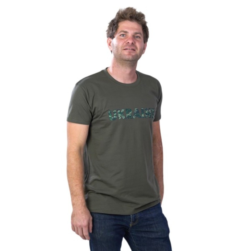 Футболка чоловіча зі стильним принтом Ukraine, горловина з круглим вирізом, колір хакі, від французького бренду Sols.