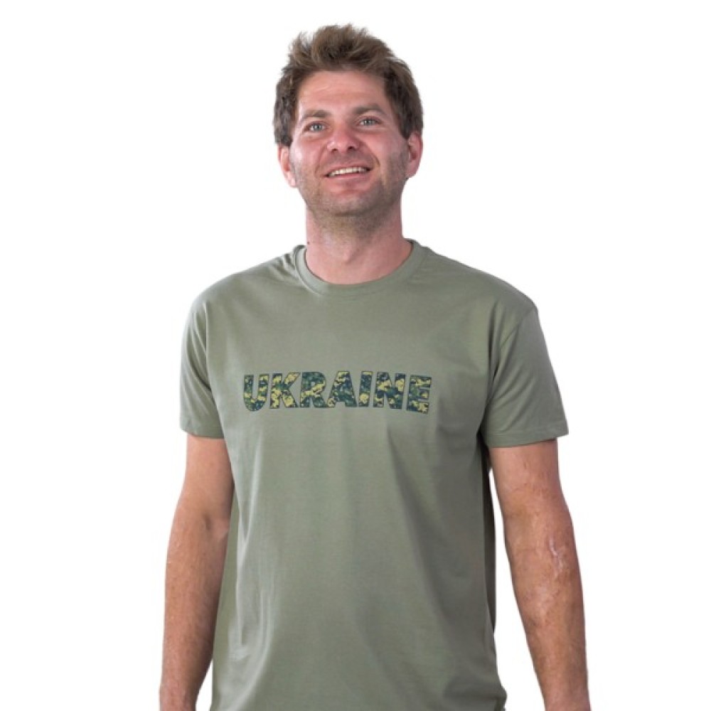 Футболка чоловіча зі стильним принтом Ukraine, горловина з круглим вирізом, колір хакі, від французького бренду Sols.