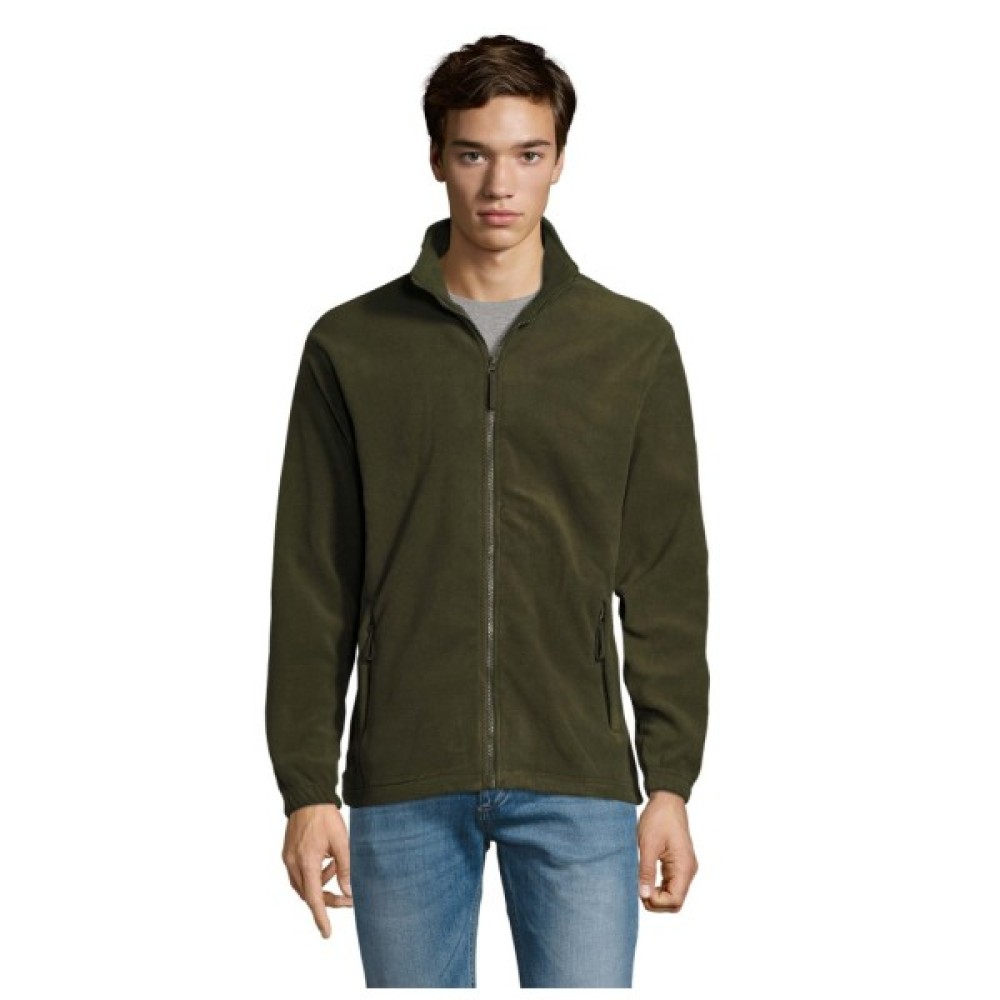 Чоловіча флісова куртка NORTH з коміром-стійкою. Зміцнююча твіллова тасьма по коміру. Дві кишені на блискавці з клапаном і знімачем з еластичного джерсі, еластичні манжети. Низ виробу оброблений кулискою зі стопером. Втачні рукава. Виріб пройшов обробку проти катишків (Anti-pilling).