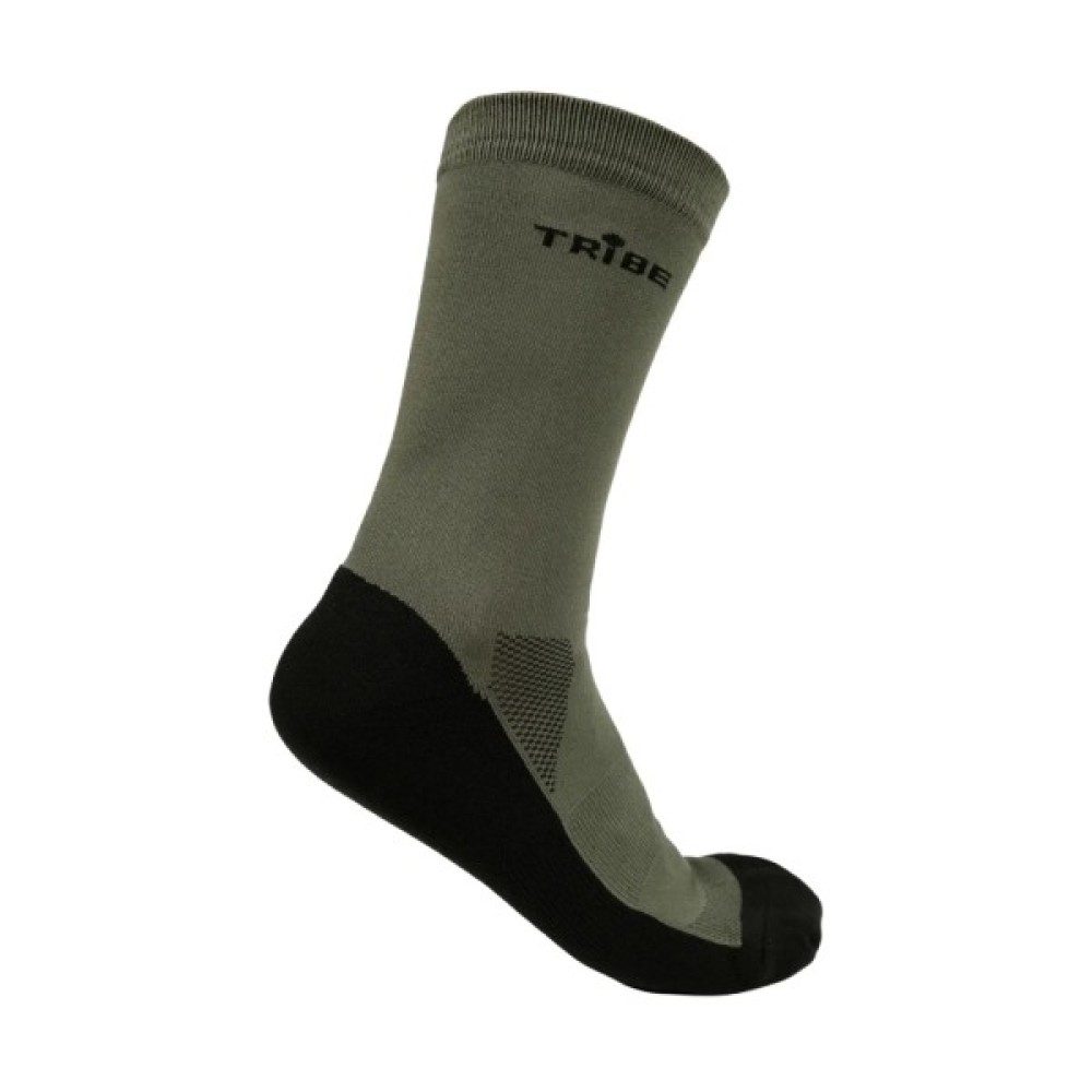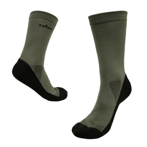 Демісезонні шкарпетки Tribe T-KB-0010 середньої товщини підходять для використання з туристичними та тактичними черевиками (з мембраною чи без). Виготовлені з поліпропілену чеського виробництва. Мають функціональні зони для вентиляції та фіксації на нозі, ефективно відводять вологу під час фізичних навантажень. Потовщені зони захищають ноги від натирань.