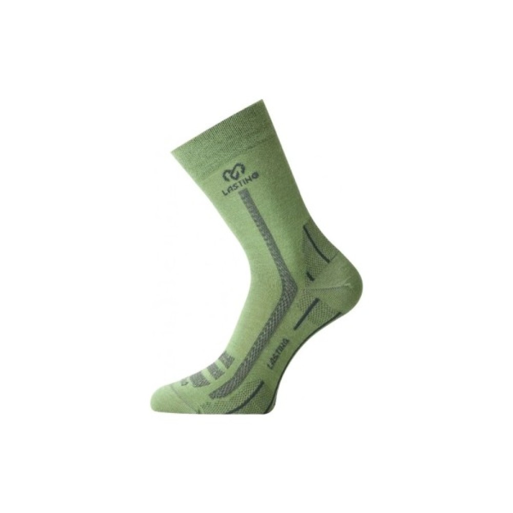 Шкарпетки від бренду Lasting для активного відпочинку. Виготовлені із суміші шерсті Merino та штучних волокон. Lasting WLS здатні відводити вологу, а також мають антибактеріальні властивості. Розробники використали тонкий шов типу Россо, який не натирає. Сітчаста область на підйомі забезпечує кращу циркуляцію повітря. Зони носка та п`ятки посилені для кращої зносостійкості шкарпеток.