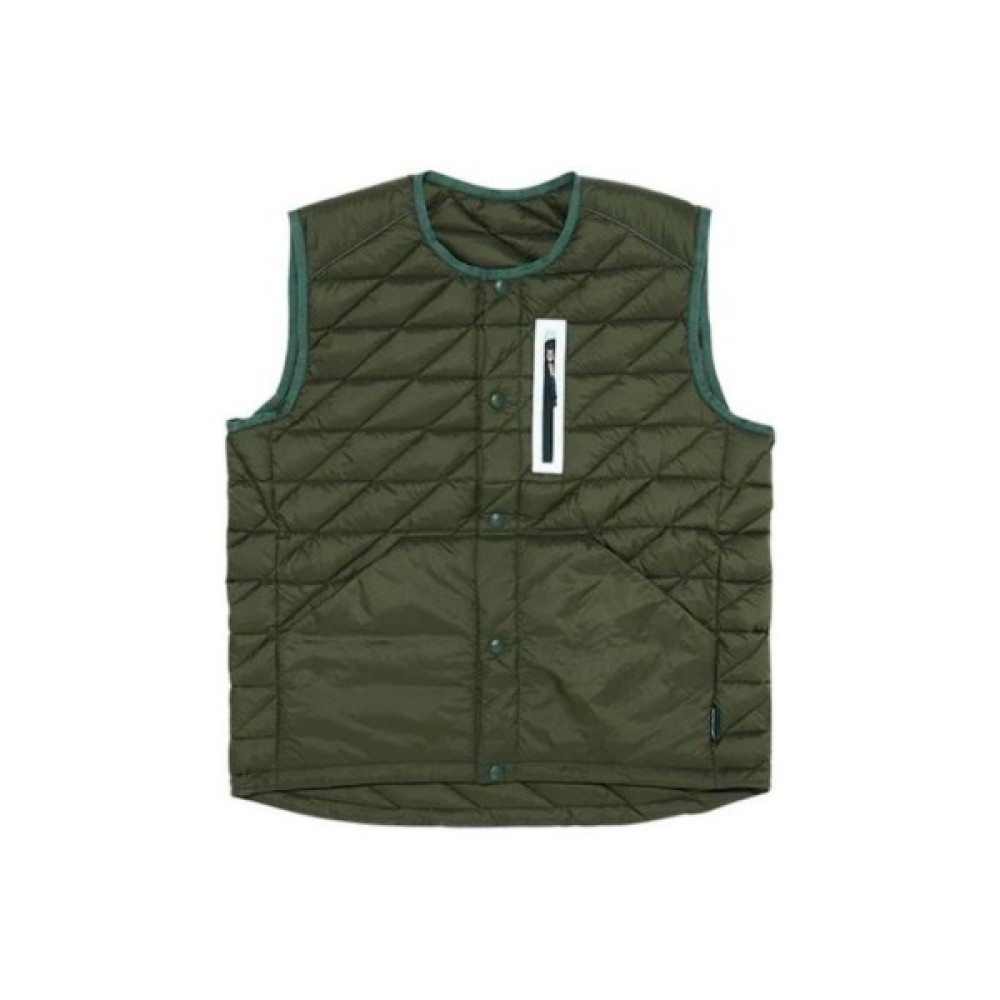 Жилет має прямий комір і застібається на п'ять кнопок. Дизайн доповнюють внутрішня кишеня та три зовнішні, одна з яких застібається на блискавку зі світловідбивальними вставками. Еластичні пройми забезпечують щільне прилягання до тіла для захисту від вітру.