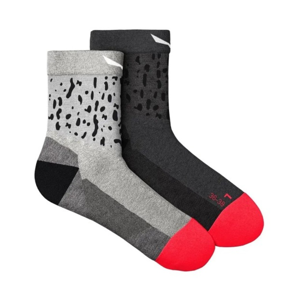 Salewa Salam QRT Wms - жіночі дихаючі та міцні шкарпетки з дизайном саламандри. Відчуйте себе комфортно під час походів: у шкарпетках шкіра дихатиме і буде захищена від появи мозолів. У складі – мериносова вовна. Завдяки відсутності швів і захисту п'яти шкарпетки дуже зручні та практичні під час активності.