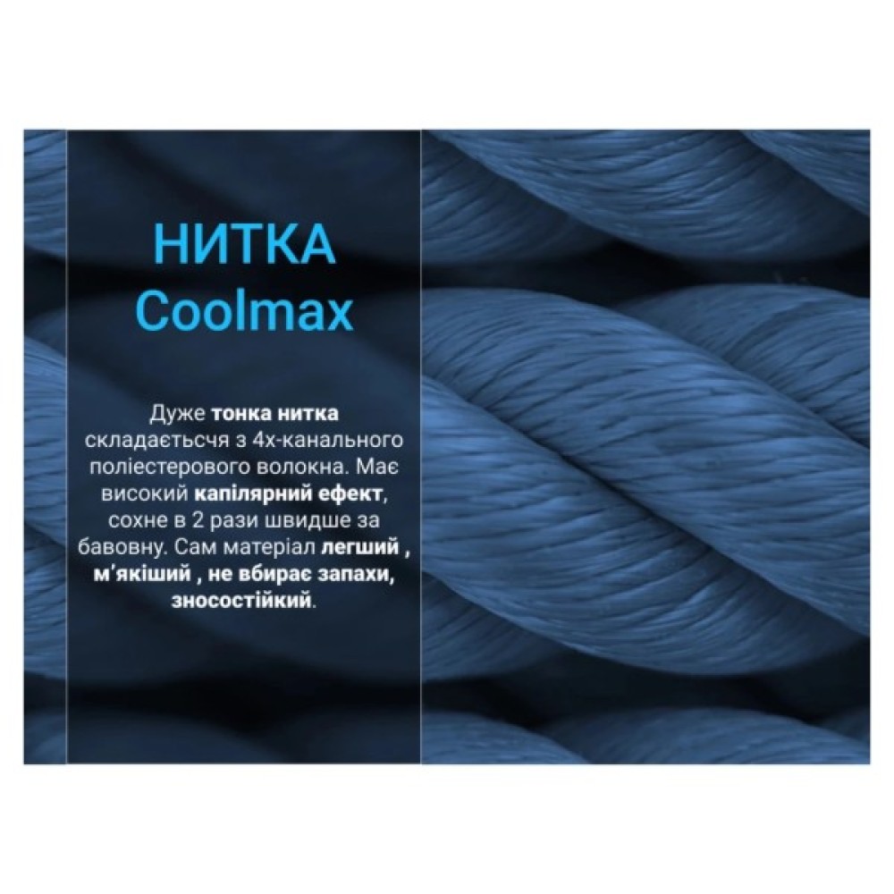 Склад внутрішнього шару 60% волокно Coolmax®; 40% нейлон