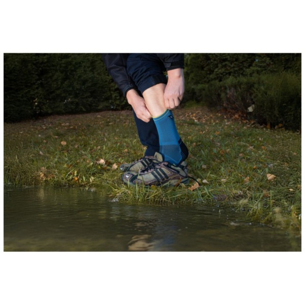 Середній шар з мембрани Porelle виробництва Великобританії робить шкарпетки повністю водонепроникними. В середньому захист діє протягом 8 годин прямого контакту з водою. Після цього необхідно просушити вироби перед подальшим носінням. Мембранна плівка також запобігає переохолодженню ніг під час холодних протягів.